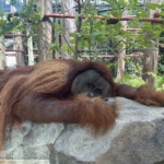 オランウータン舎へ行くと、岩の上に大の字になってるウータン発見 かわいくて見てるとこっちを見てポーズ決めてくれました❤️
