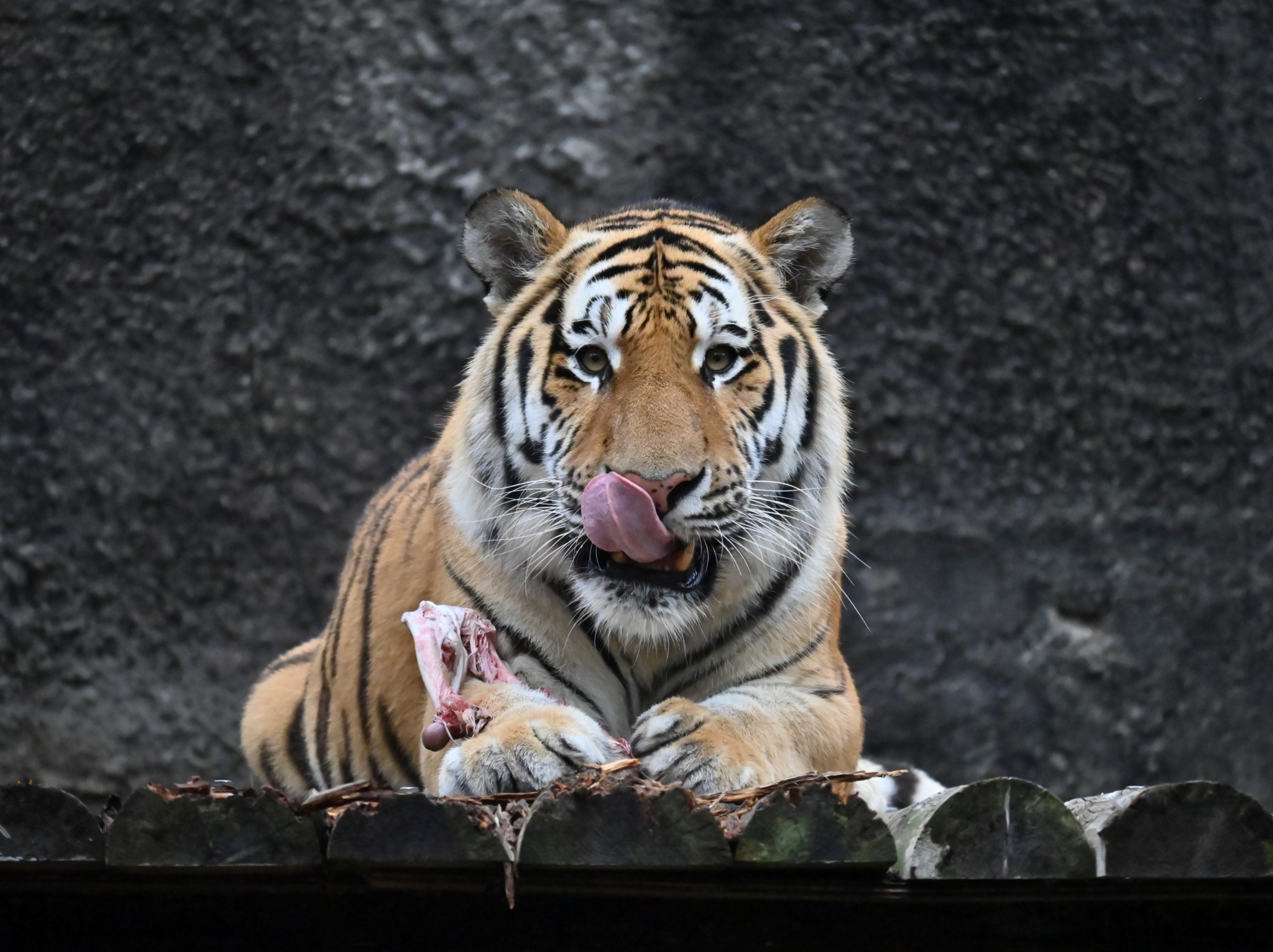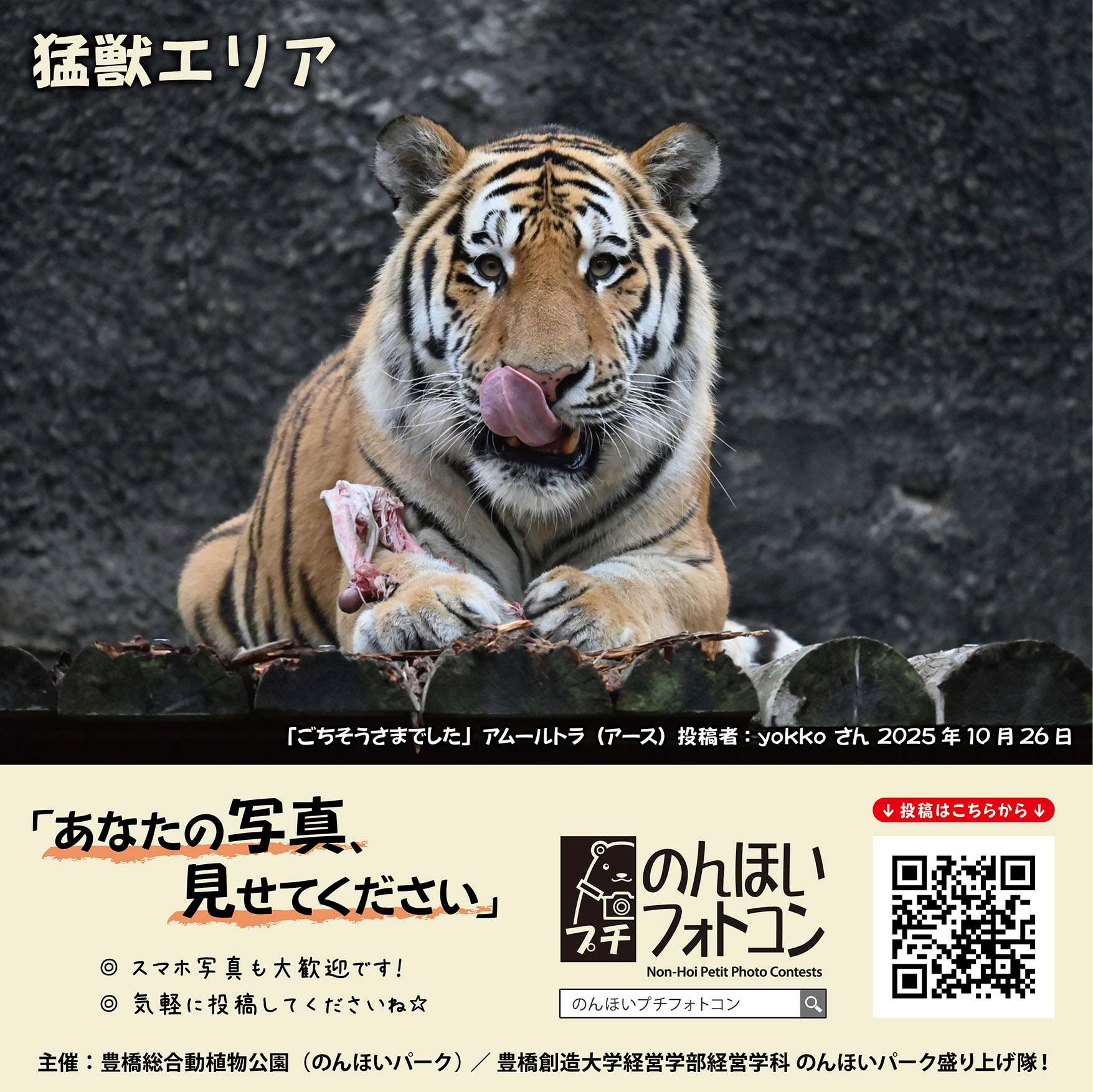 屠体給餌があり、食べ終わった骨を抱えて満足そうにペロッとしたアースです