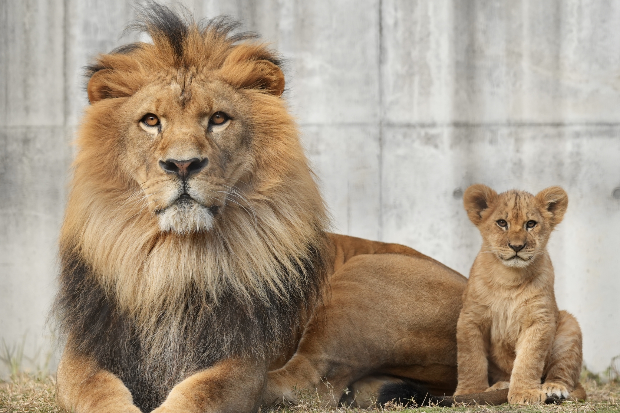 百獣の王らしい父と小さな可愛い子。「いつかパパみたいな立派なライオンになるんだ」言ってる気がします。