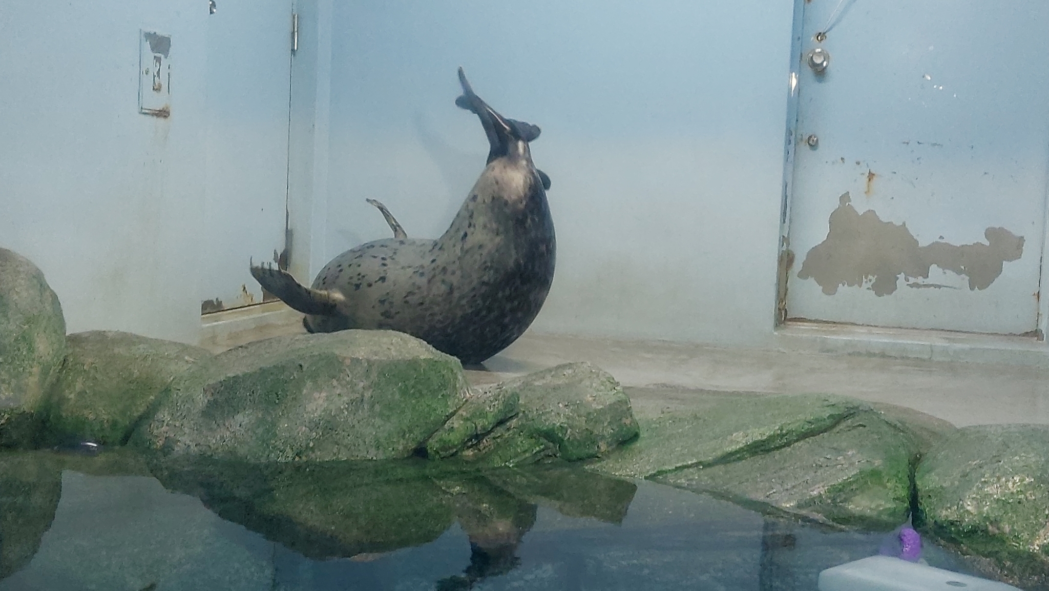 ゴマフアザラシ(もなか)が一生懸命何かしようとしてる中面白い写真が撮れました