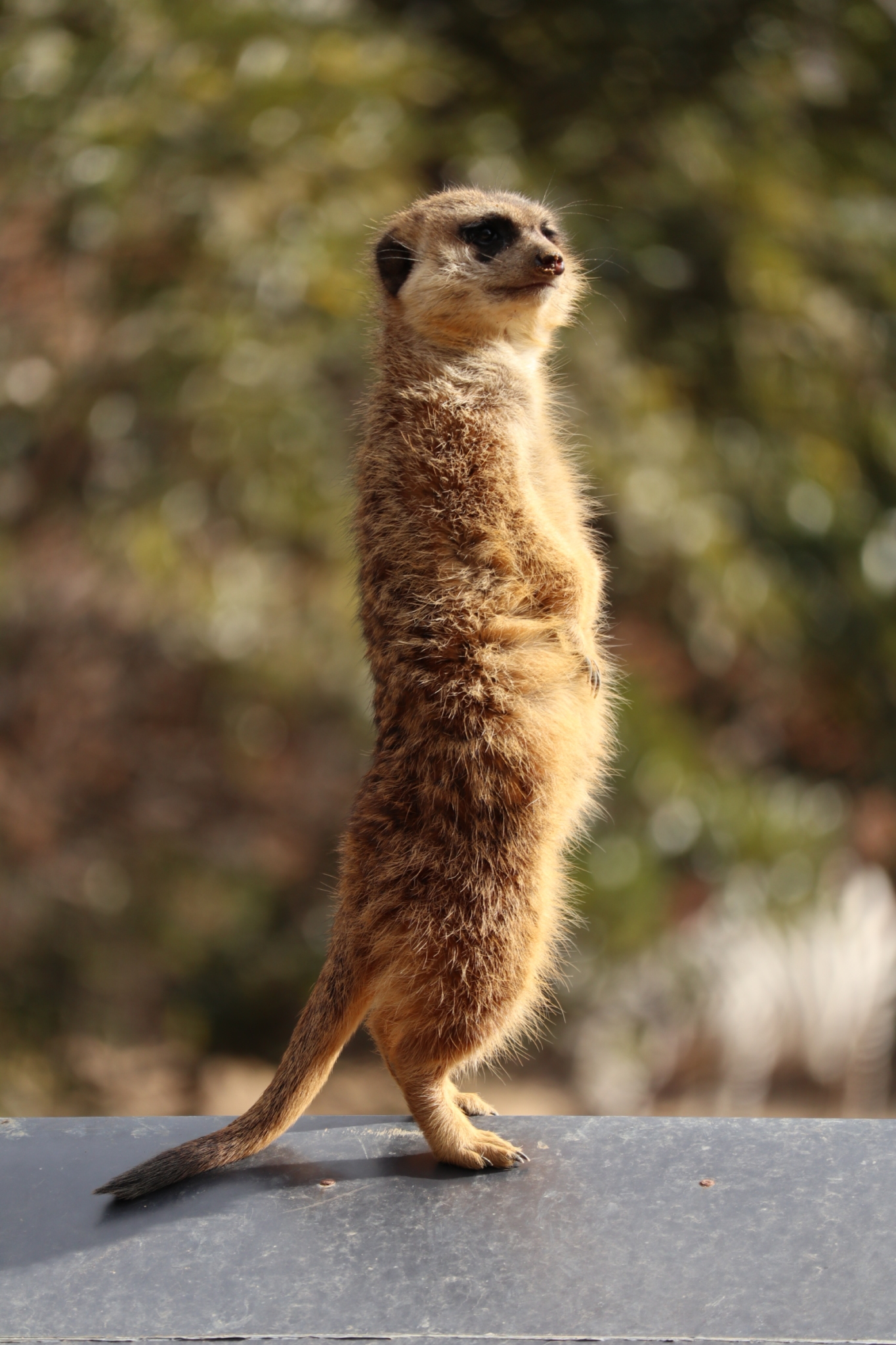 他のミーアキャットが餌を食べている間、屋根の上でしっかり見張り当番していました!