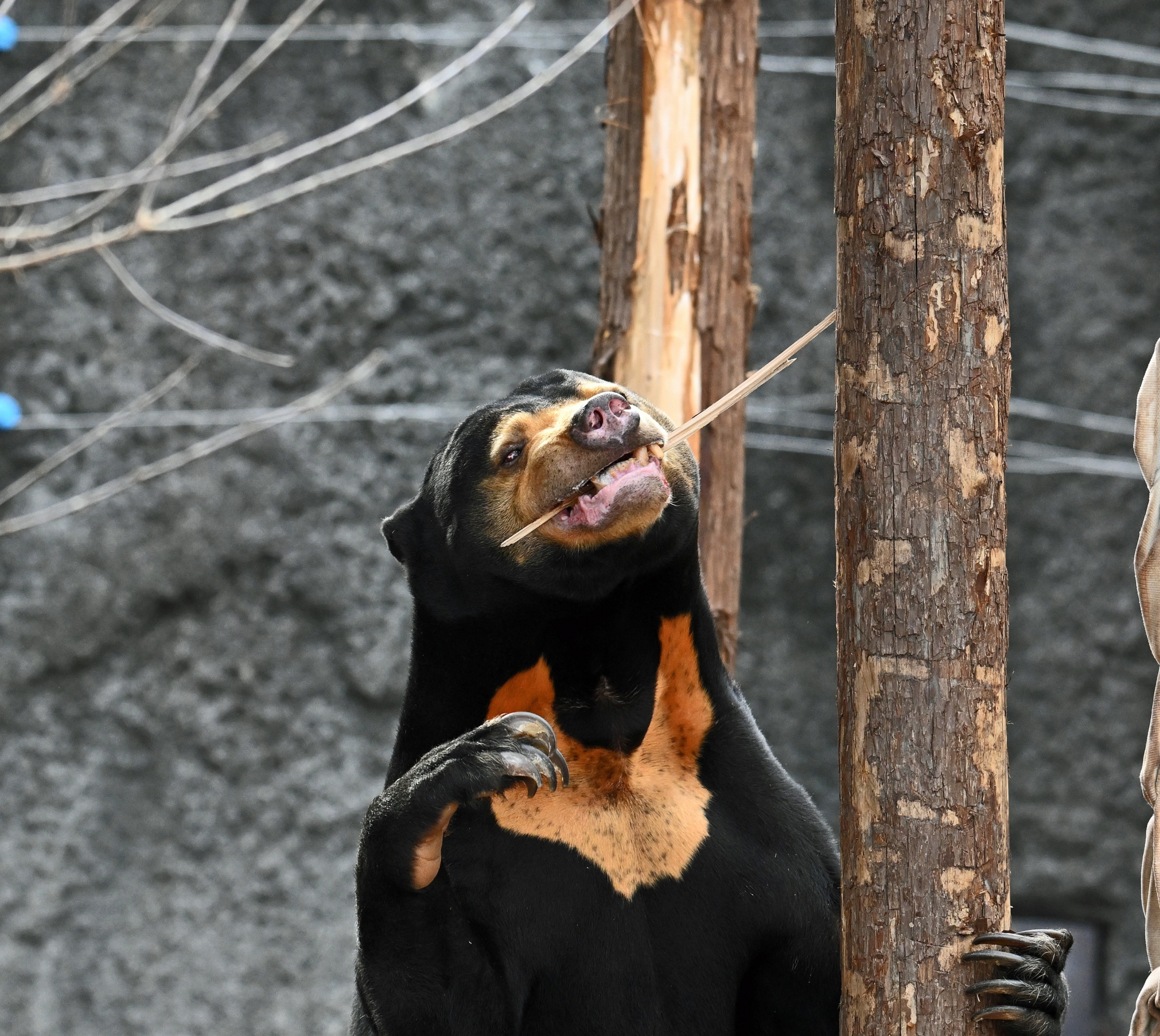 丸太を新しく変えたのに構わず丸太をバリバリ噛んでます