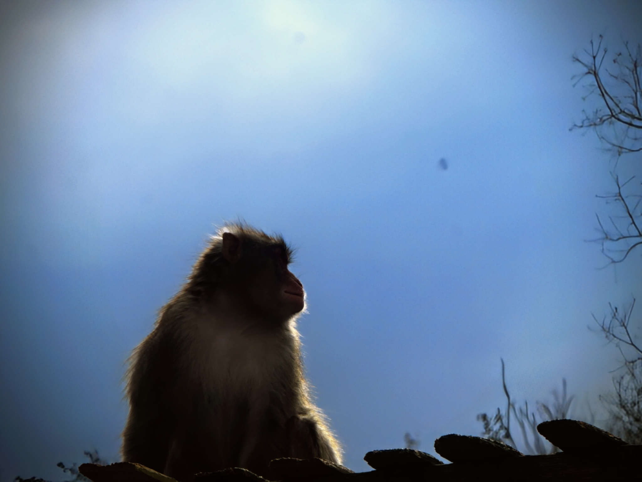 逆光で幻想的になったニホンザル
