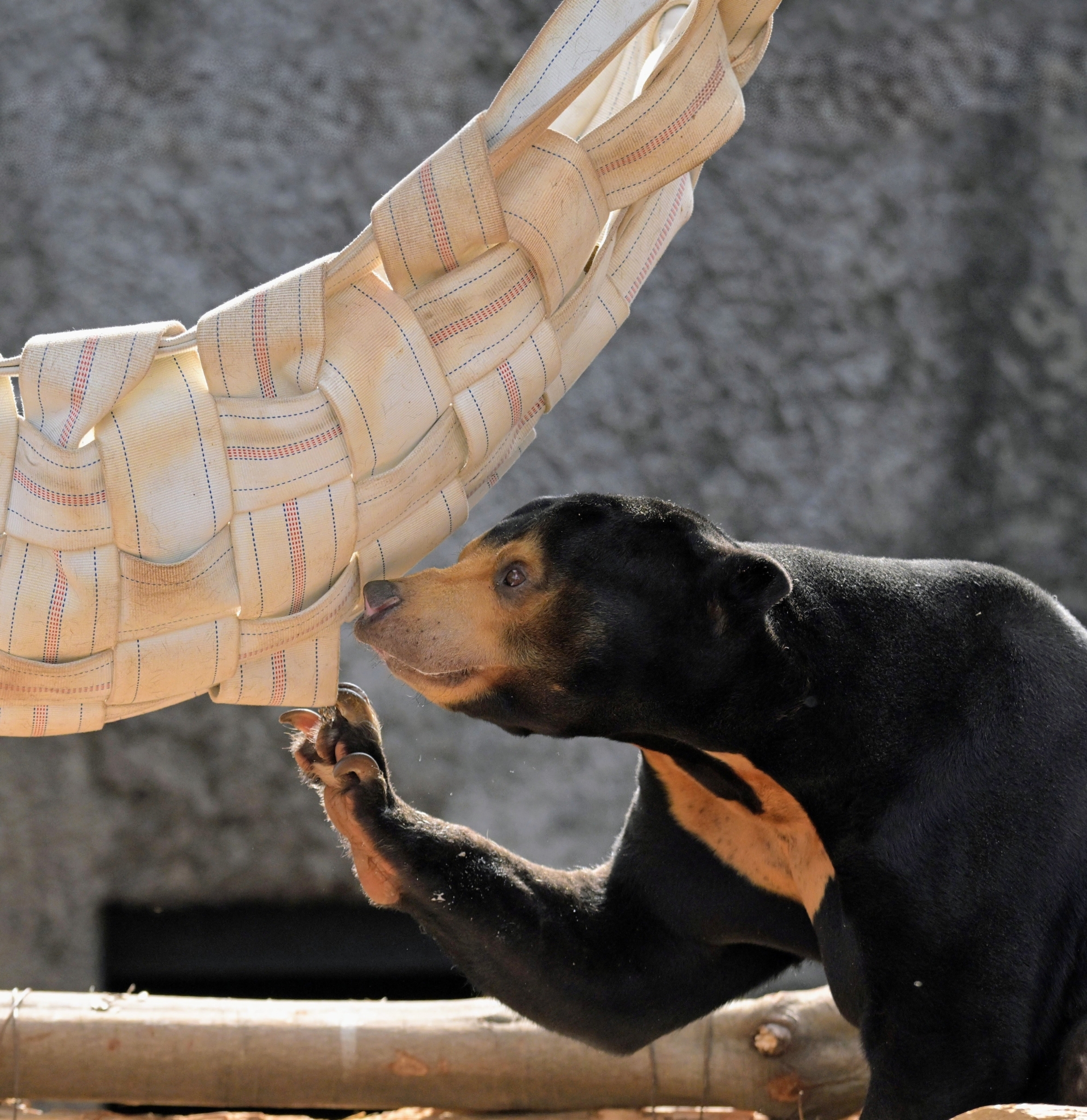 ハンモッグの中に有る食べものをのぞき見しているマーチン
