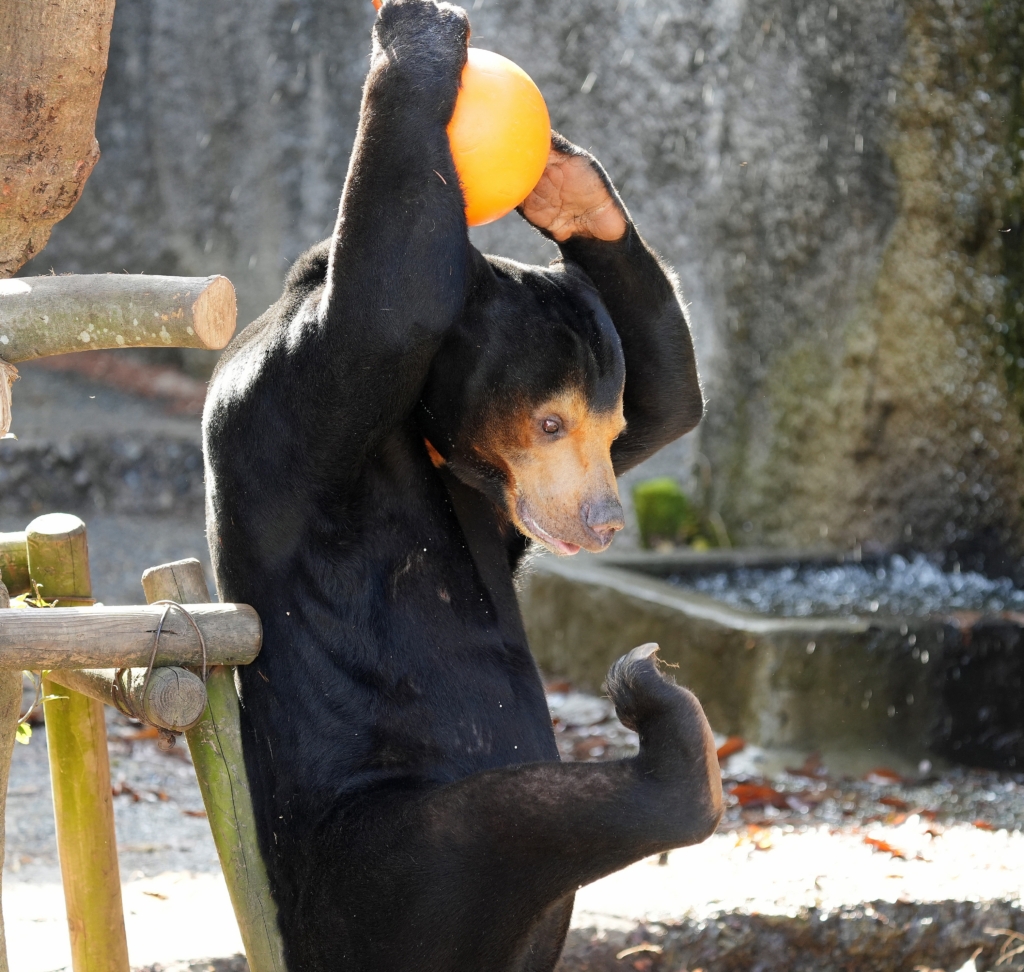 熊が水浴び。ポカポカ陽気で気持ち良さそう。まるで人が温泉に浸かってるかよなうな表情と格好が素敵でした