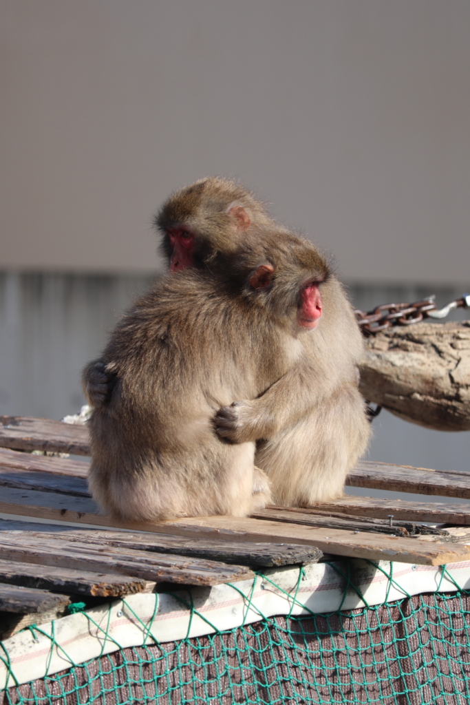 抱かれてる猿さんがキーと鳴かれ急いで仲間が来てぎゅーした様子です