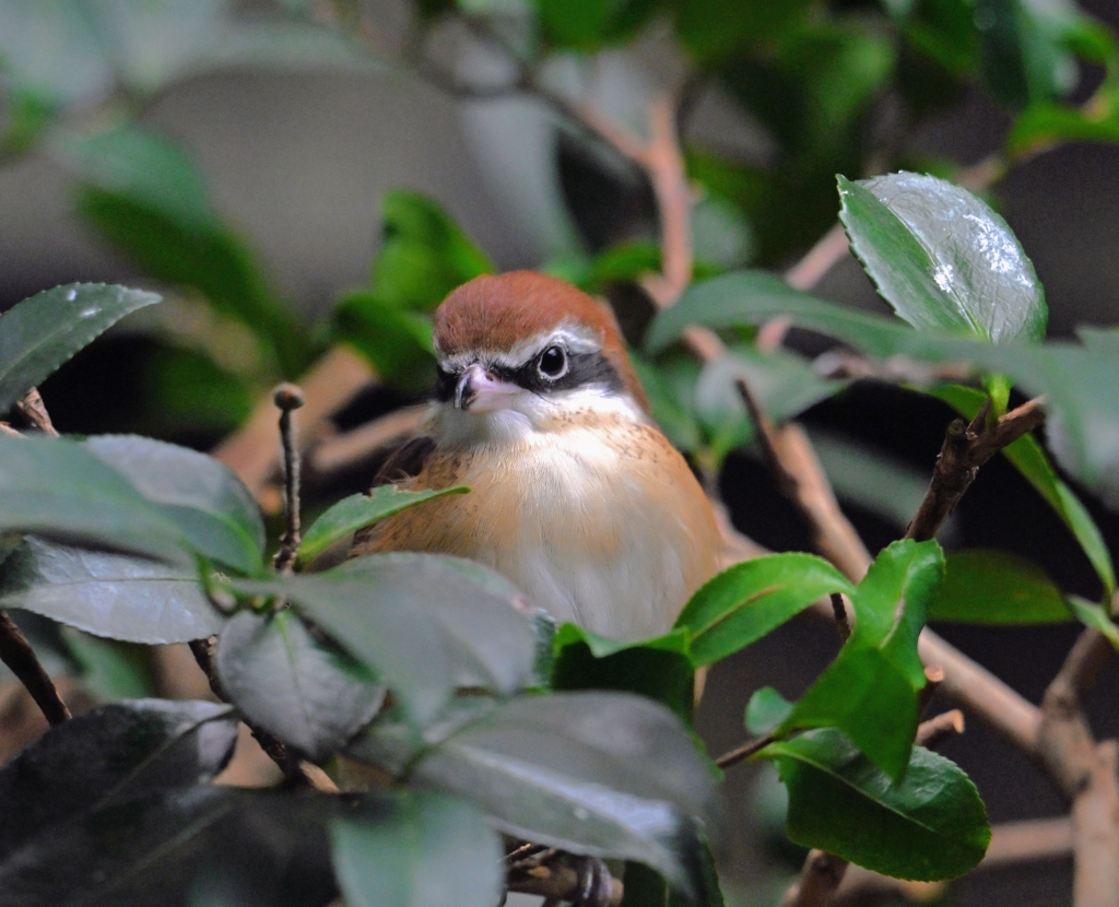 アカモズの姿が無いと探していたら近くの葉っぱの中にかくれてました