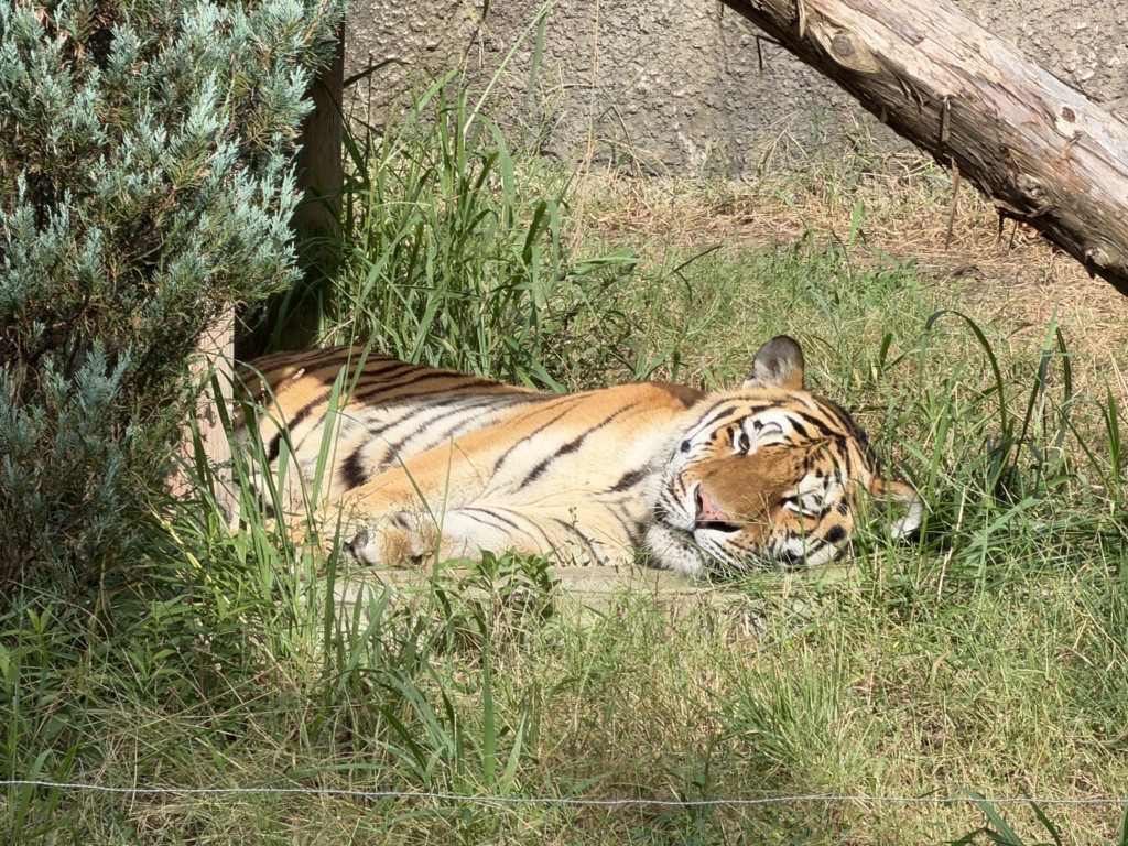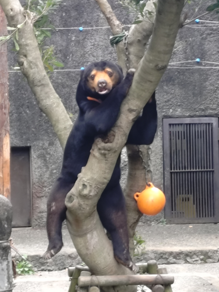 最初見に行った時は出ていなかったアマナちゃんがもう一度見に行くと出てきていて、座ったままこっちを見たり、丸太に手をついてクロスさせてみたり、色んな格好をして見せてくれた時の写真です。初めて伺って、可愛くて可愛くて釘付けになりました。