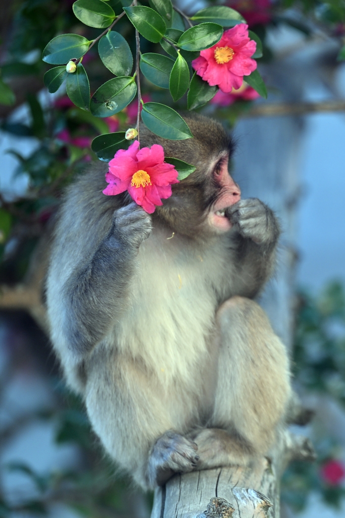 コトネちゃんがサザンカの花を食べてました