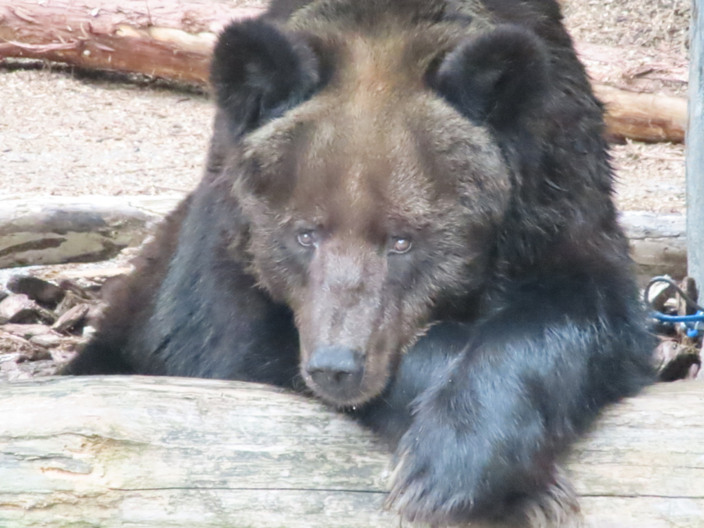 最初見に行った時は出ていなかったアマナちゃんがもう一度見に行くと出てきていて、座ったままこっちを見たり、丸太に手をついてクロスさせてみたり、色んな格好をして見せてくれた時の写真です。初めて伺って、可愛くて可愛くて釘付けになりました。