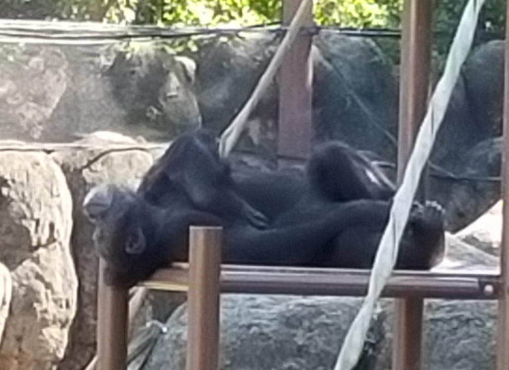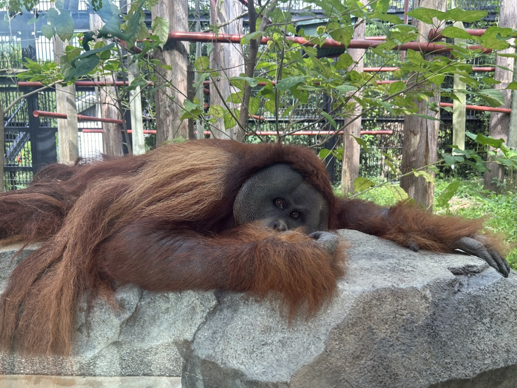 オランウータン舎へ行くと、岩の上に大の字になってるウータン発見