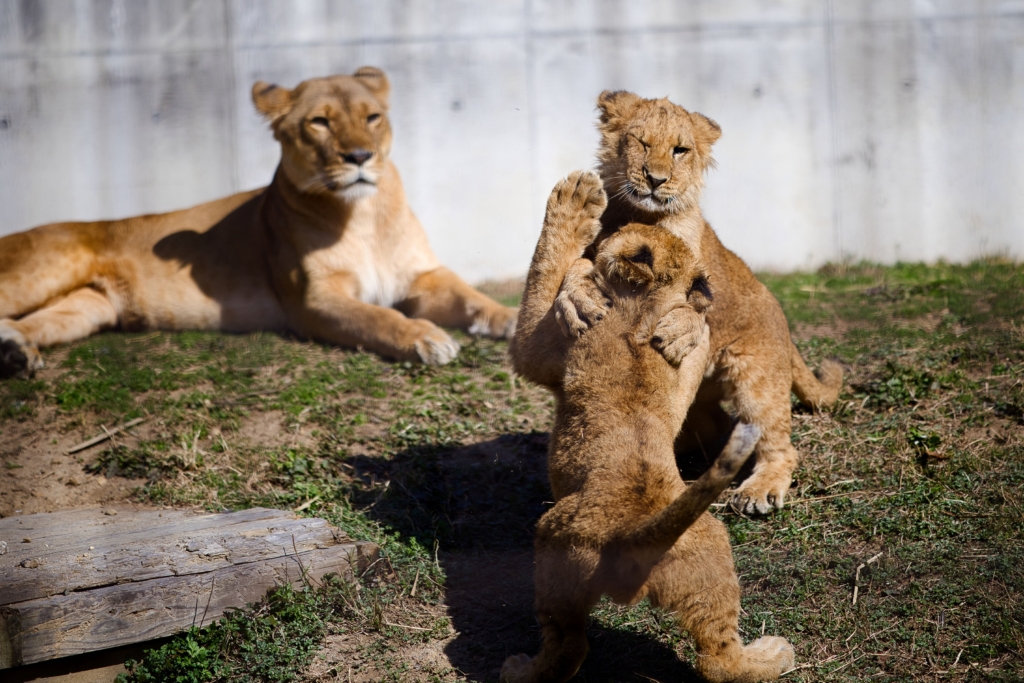 木片で遊ぶベガちゃん、木片を狙うのはアル?デン?