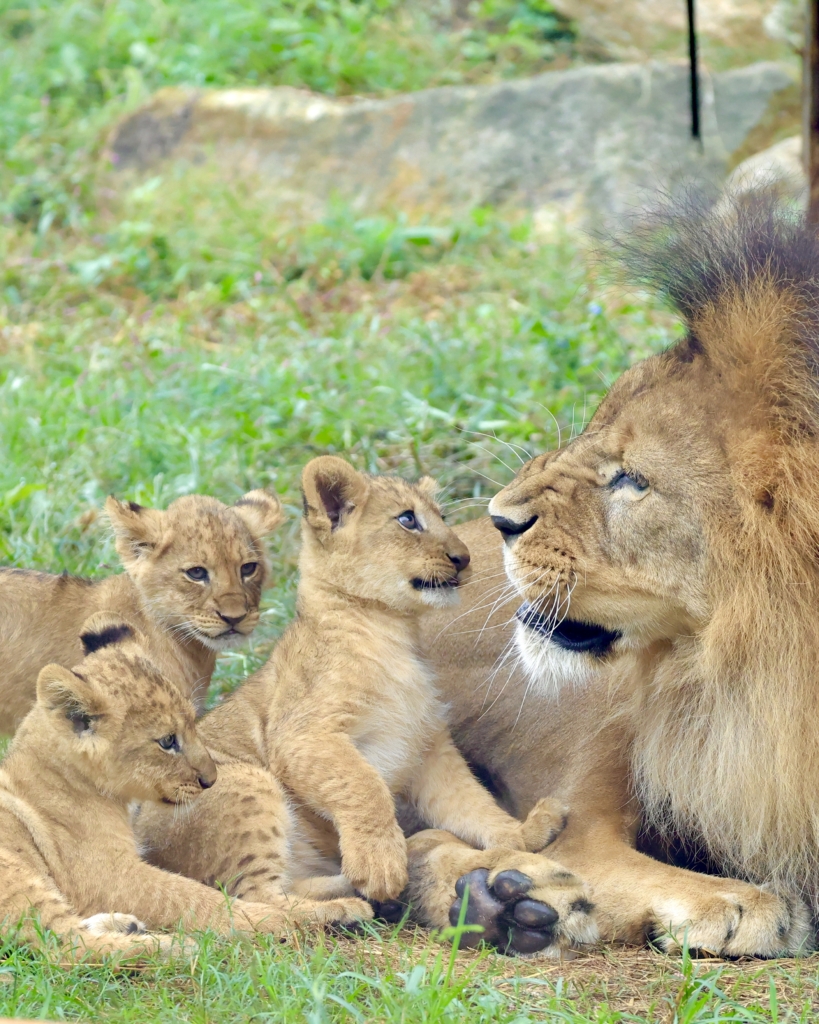 アースパパとスキンシップをとろうとする仔ライオンたち