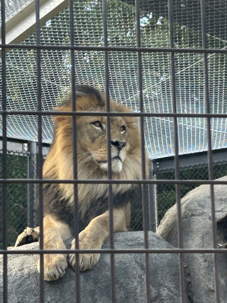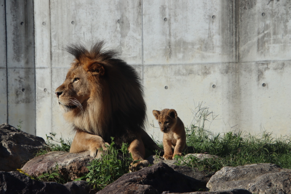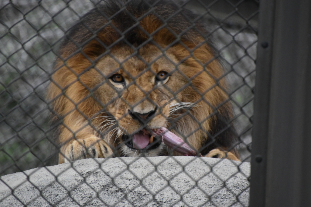 先日初めてのんほいパークへ。ライオンの給餌を見ることができました。大きなお肉をバキバキと食べるお父さんの迫力に圧倒されました。
