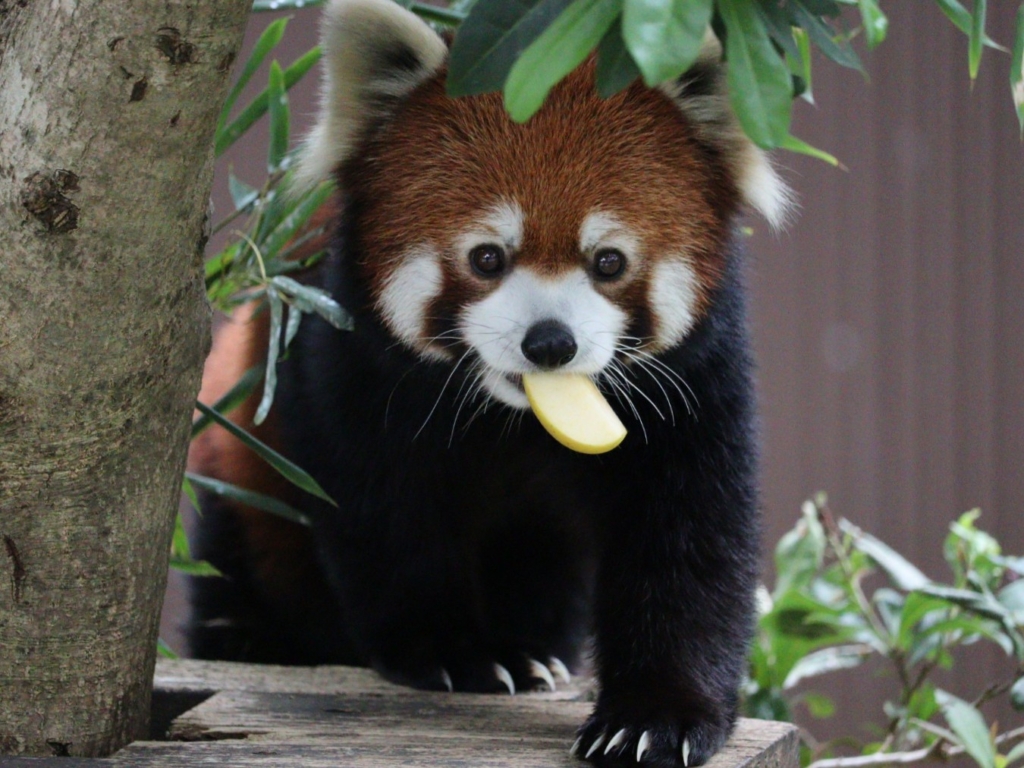 おりんごもらって嬉しそうに登ってきたリーちゃん