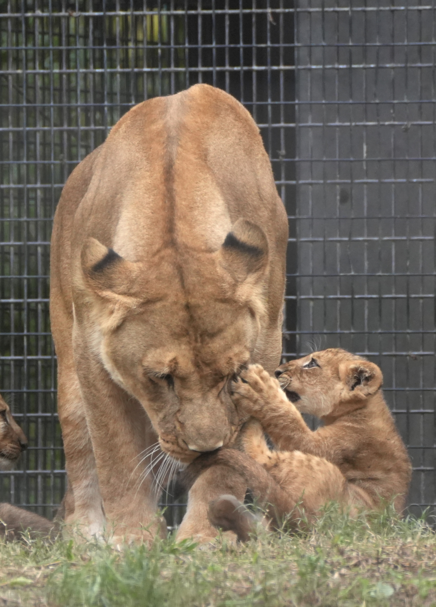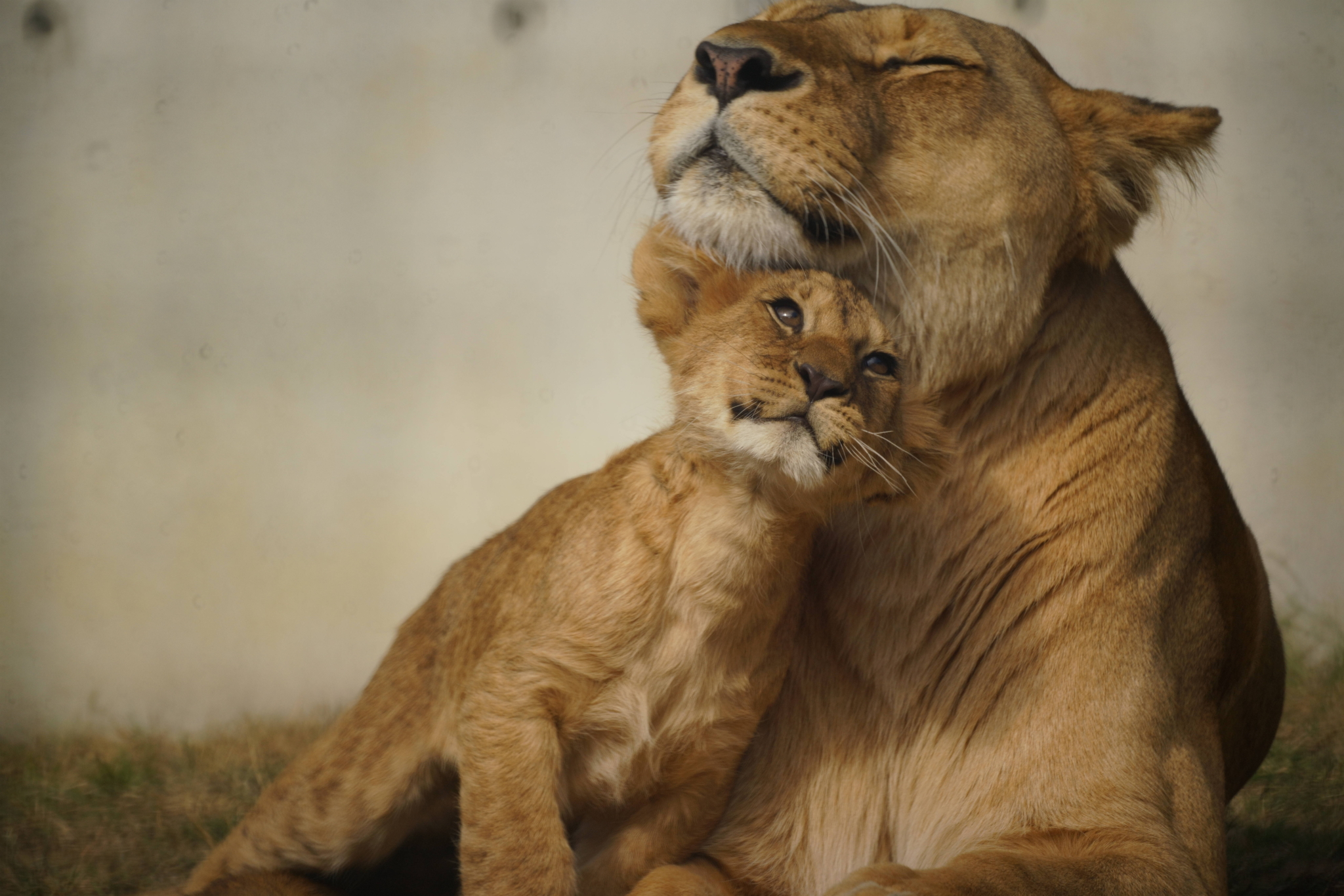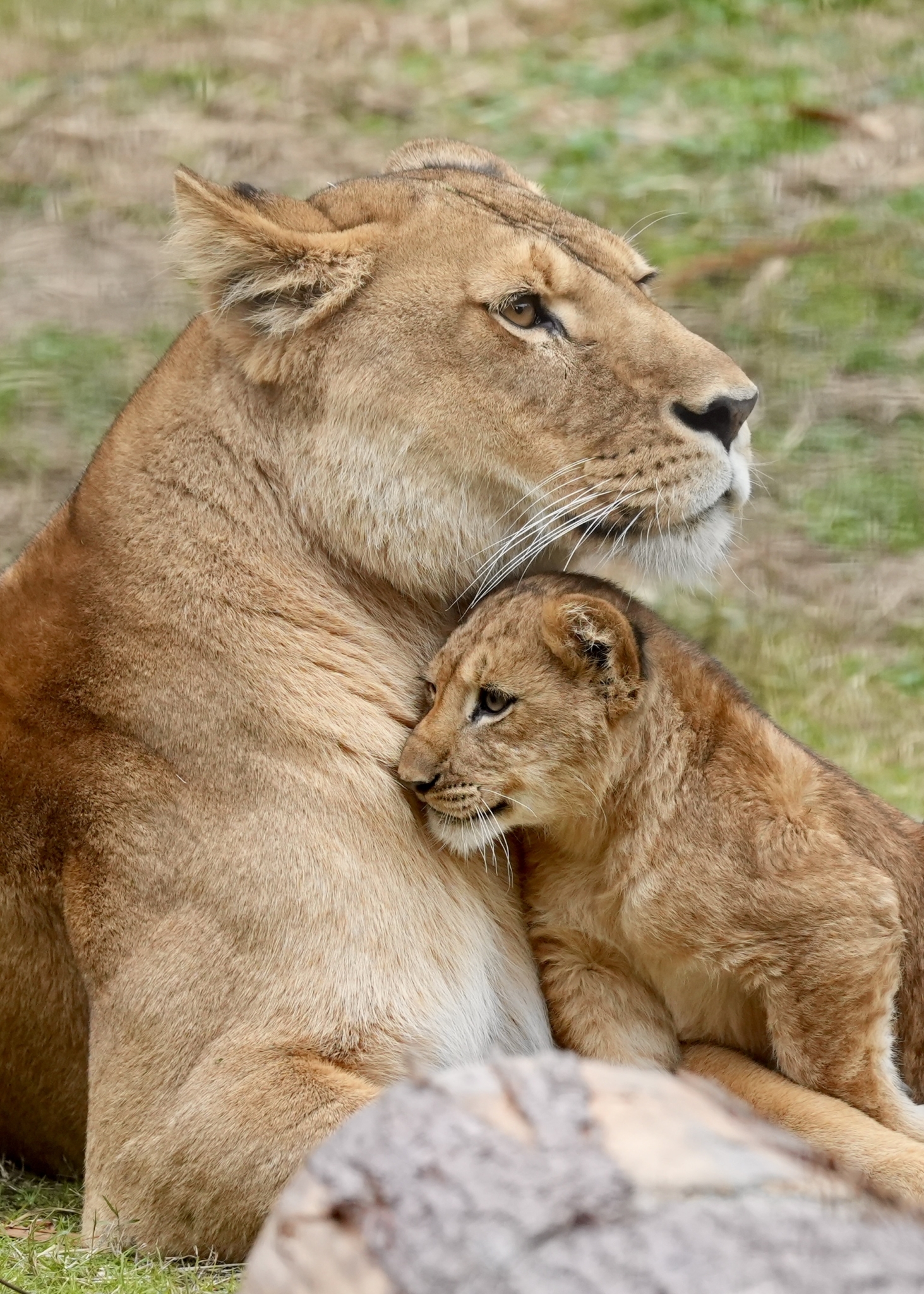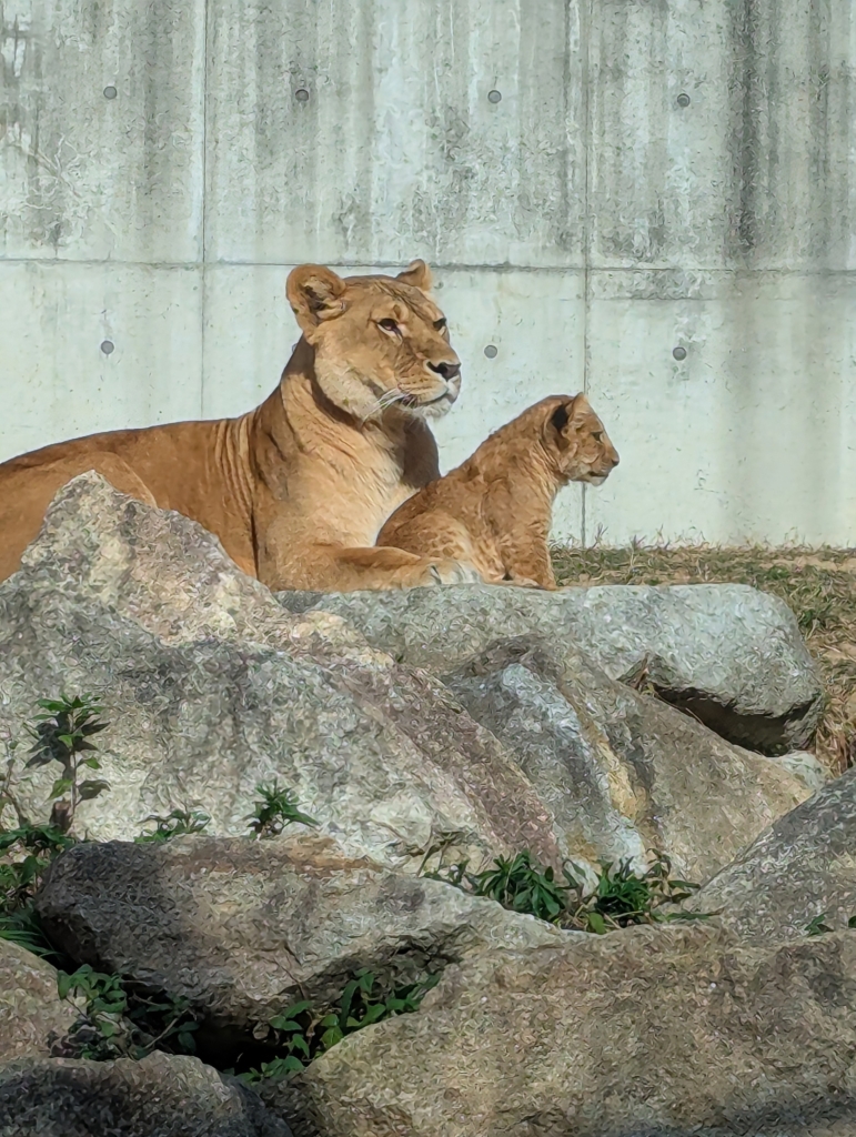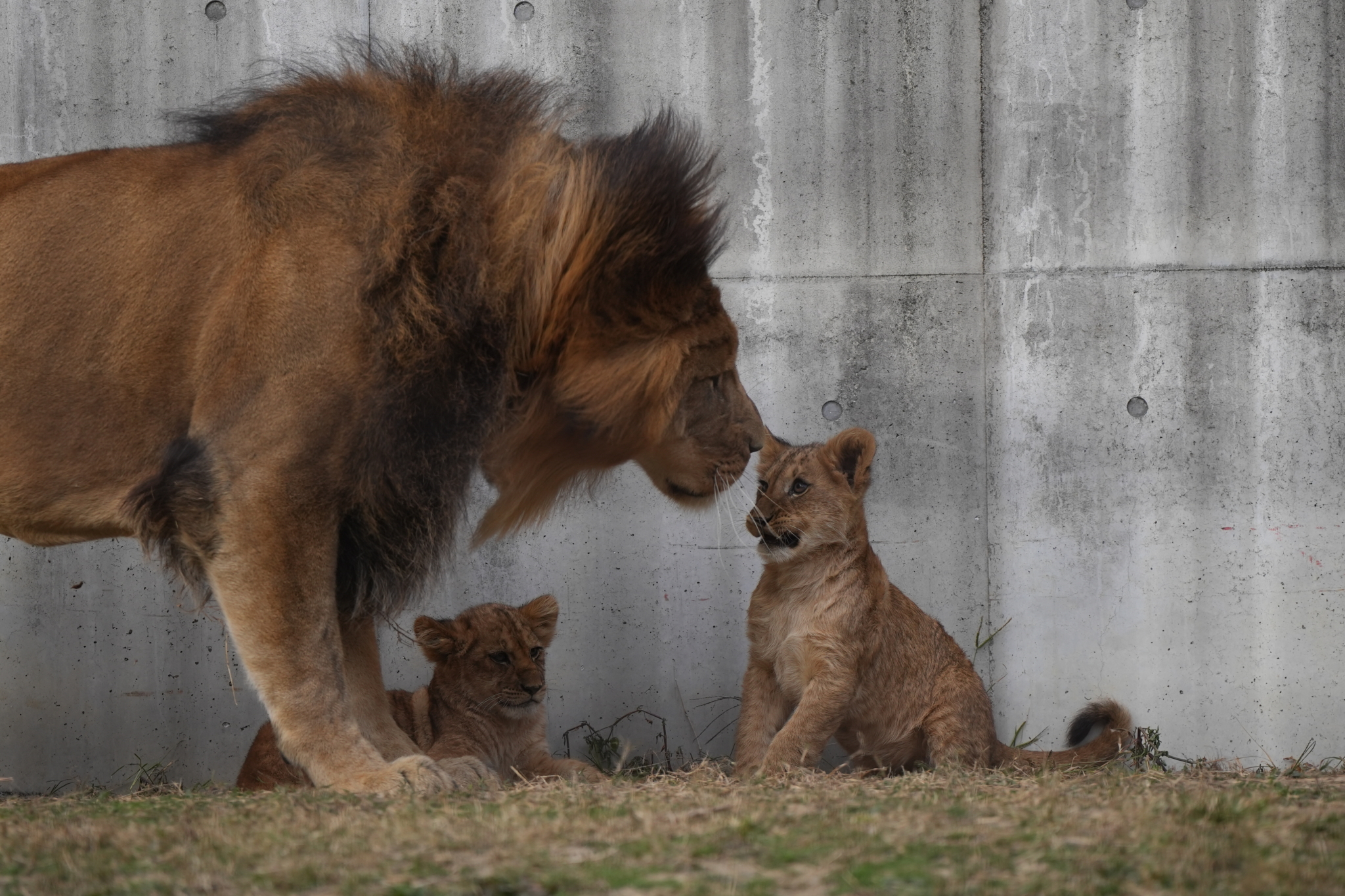 百獣の王らしい父と小さな可愛い子。「いつかパパみたいな立派なライオンになるんだ」言ってる気がします。