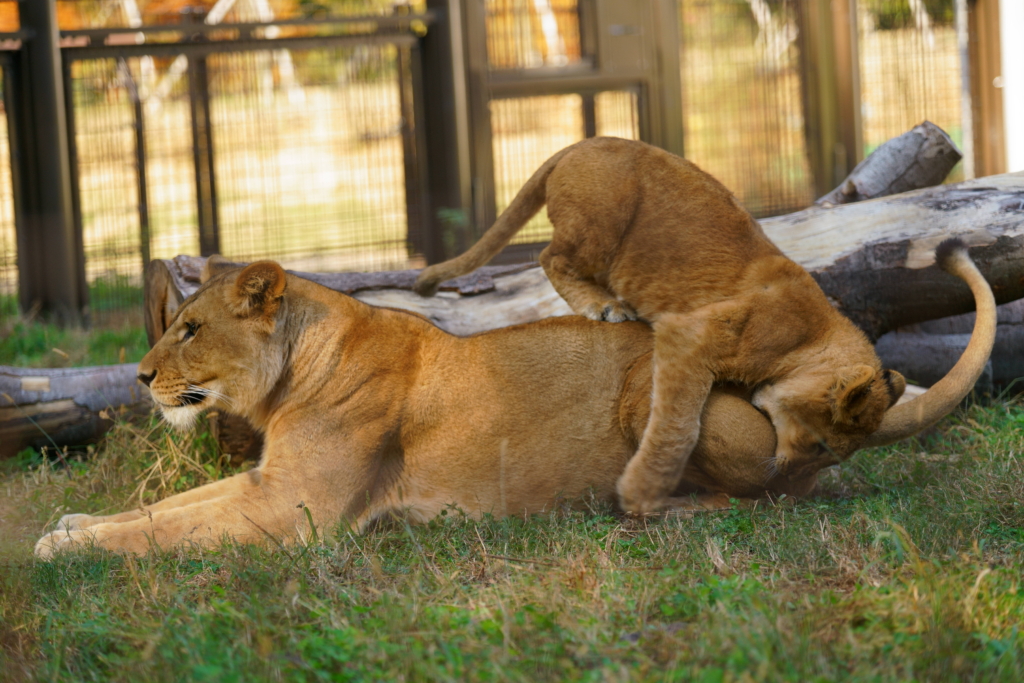 11月29日に撮りました。シルクママを見上げる獅子っ子の眼が可愛らしい所がお気に入りポイントです。