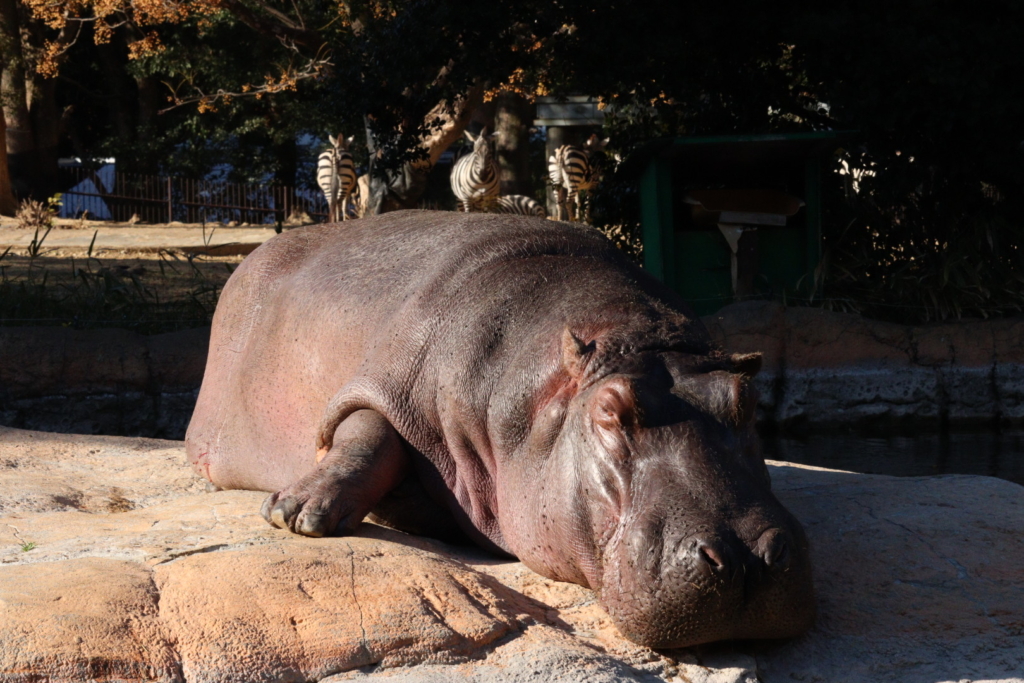 カバの上にシマウマたちが乗っているような写真が撮れました!!