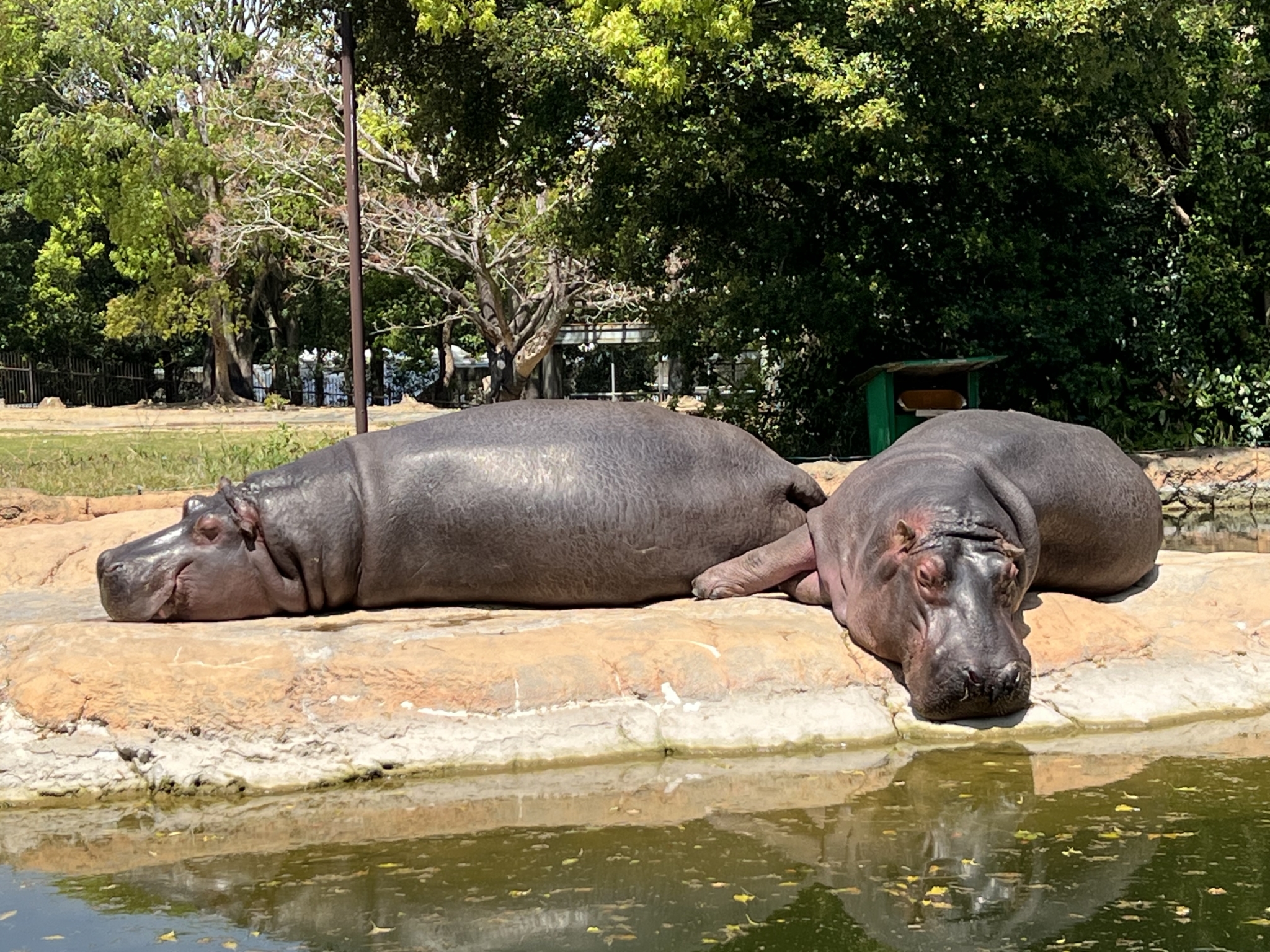 平日にお散歩がてらのんほいぱーくに行きました。何度か訪れているけれど、2頭が仲良く陸で寝転がってるのは初めて見ました🫶のんびり平和だな〜。
