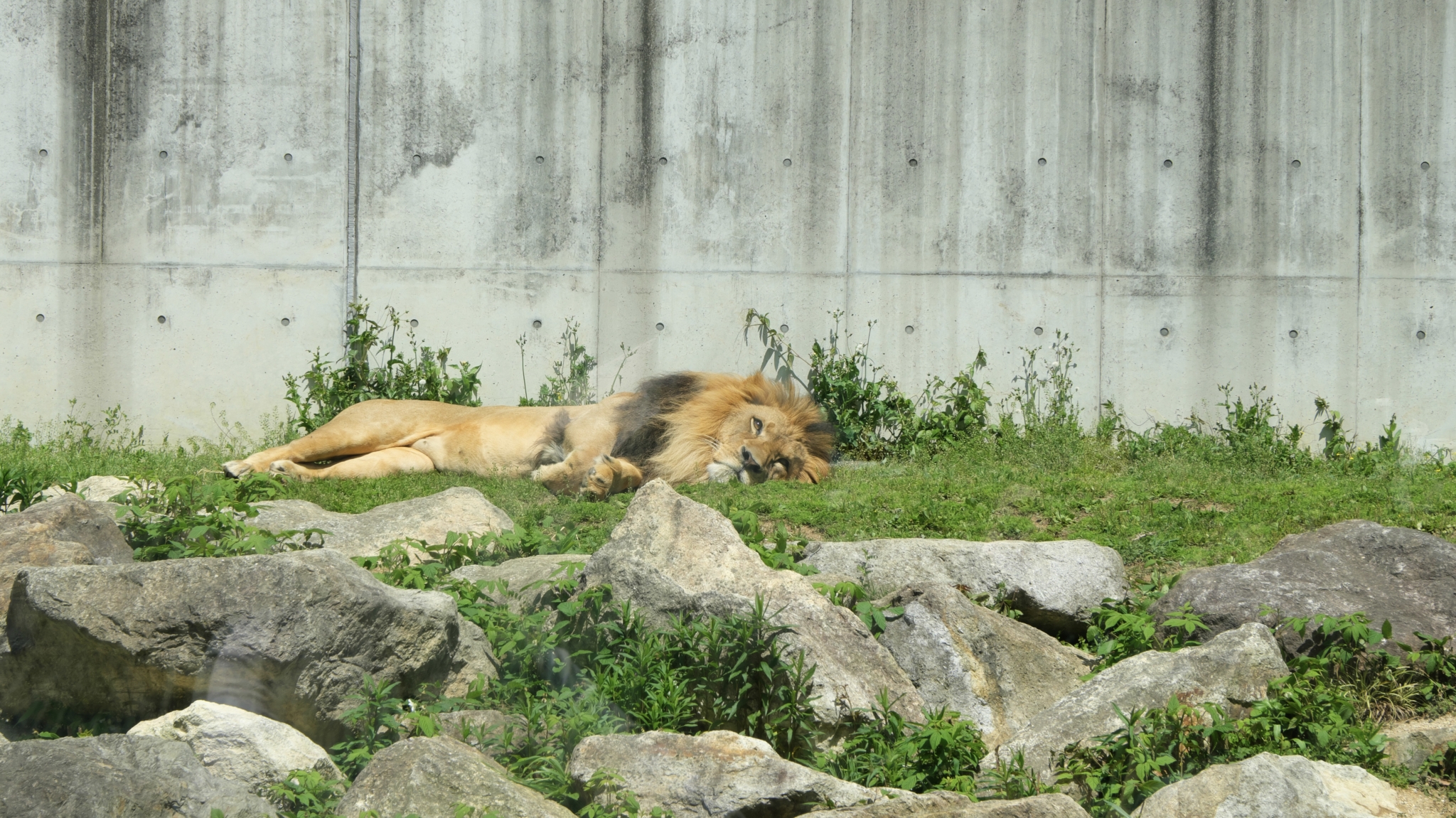 日差しを浴びて気持ちよさそうに眠るライオン。彼らにとっても、ここが最高の居場所なんだなと感じます。