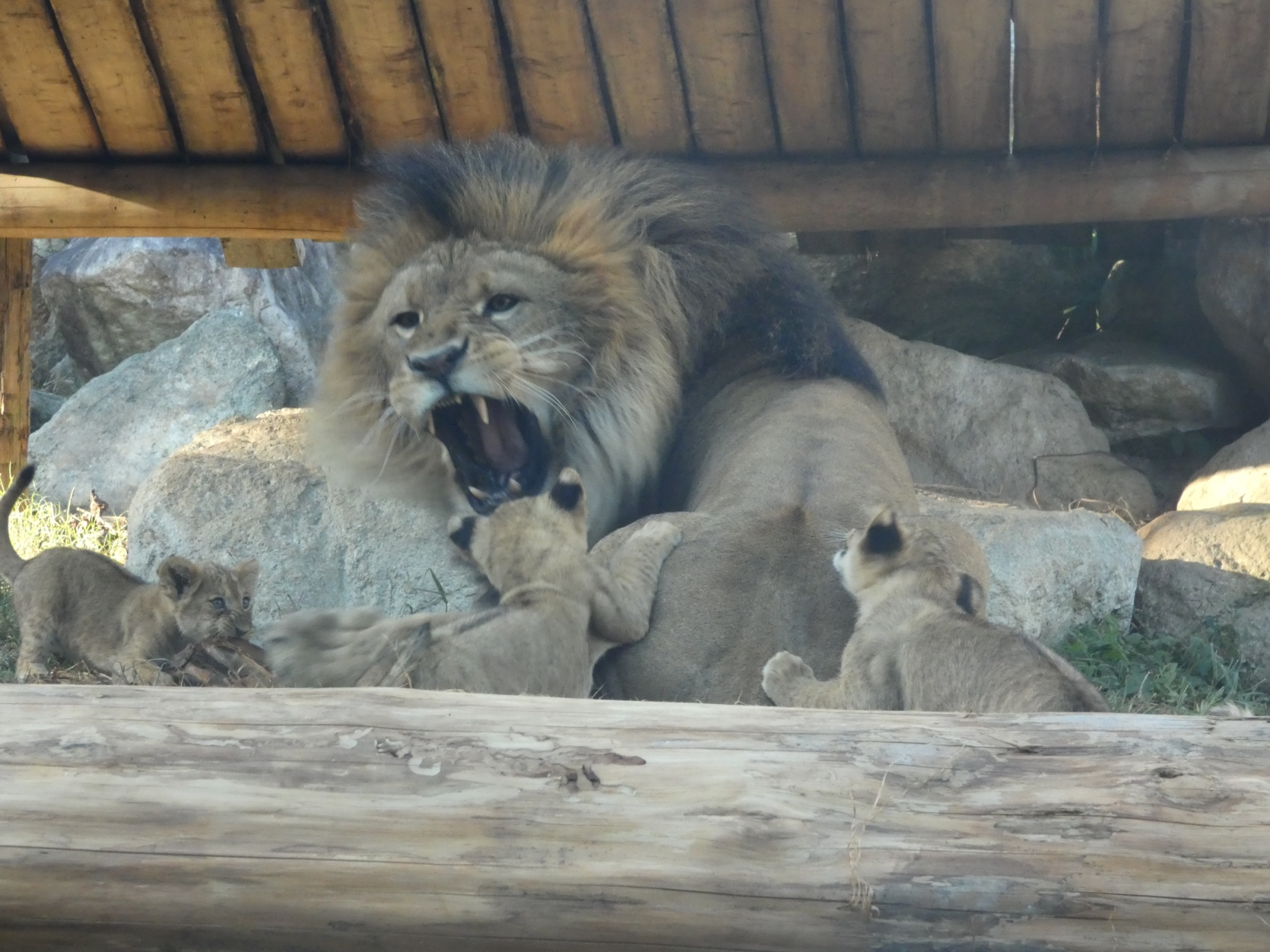 登ってはずり落ちまた登る仔ライオンたちとお尻をかじられて
