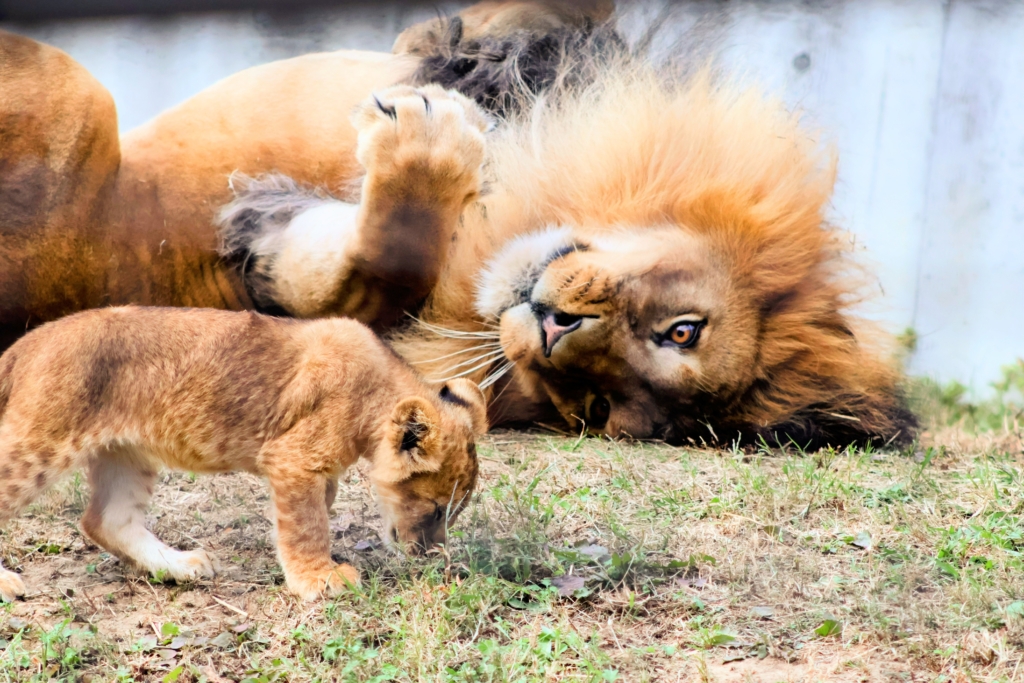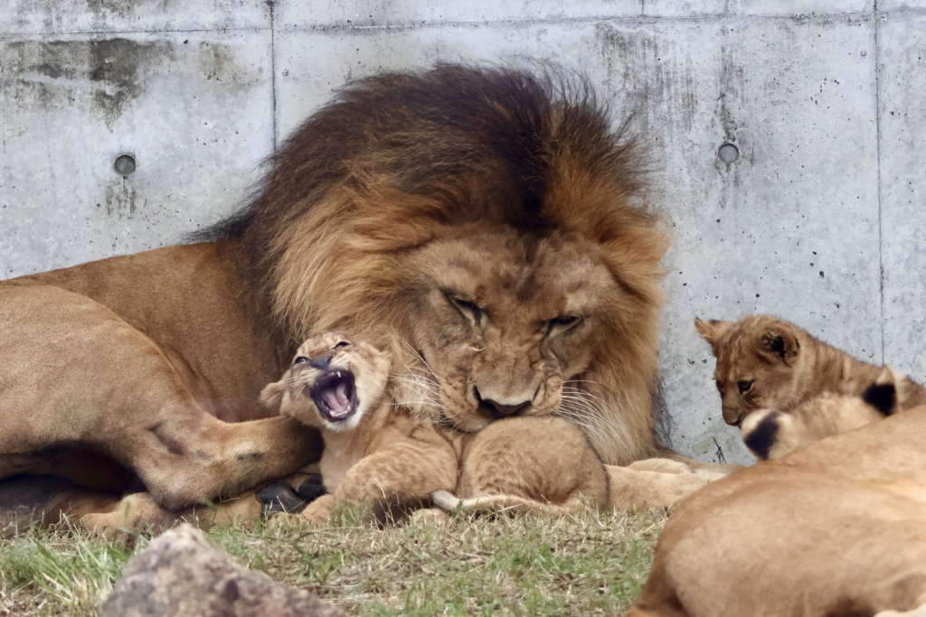 ごろんして子供を見守る様子がとてもかわいいです♡