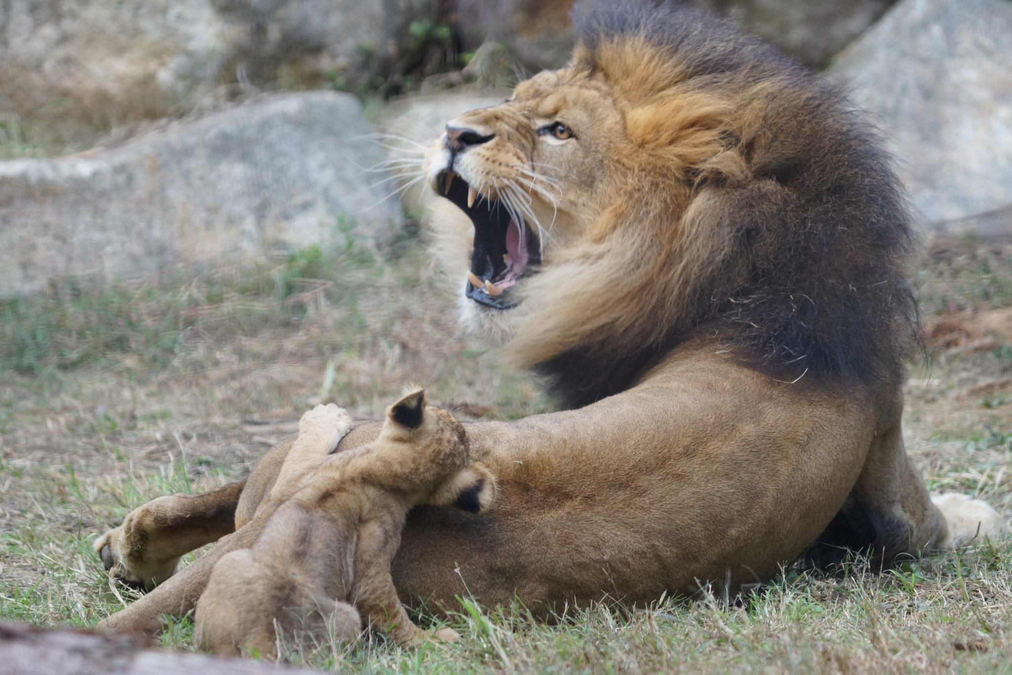 ごろんして子供を見守る様子がとてもかわいいです♡