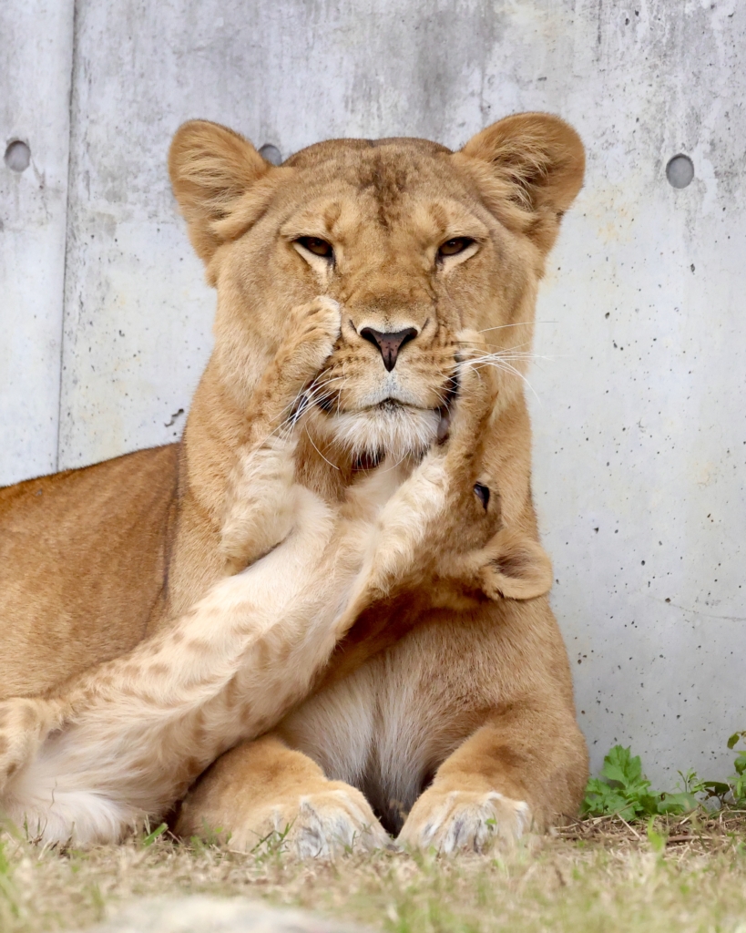 ごろんして子供を見守る様子がとてもかわいいです♡