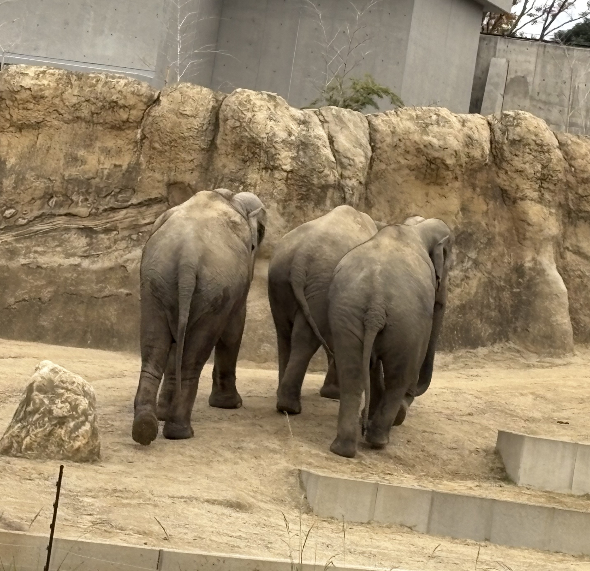 ぞうさんが3匹一斉に部屋に戻った時にちょうど撮れました