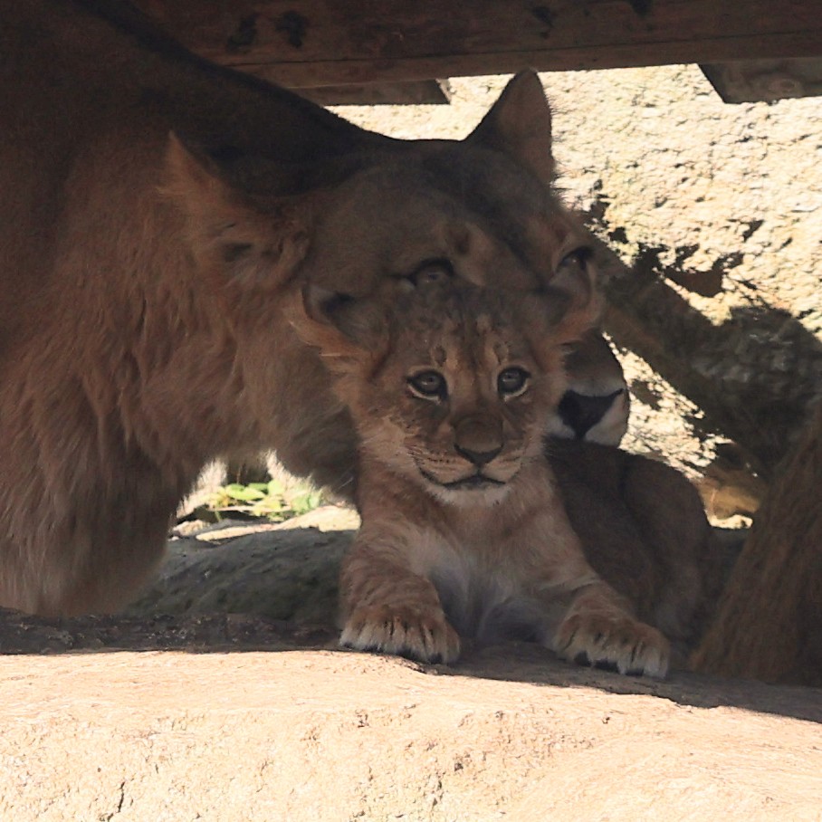 ちょうどお父さんお母さんと同じ様にウトウト、何かを見つめる姿がかわいい仔ライオン