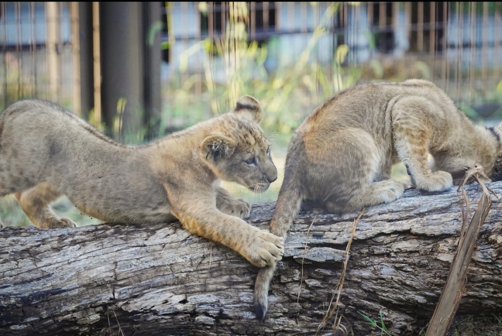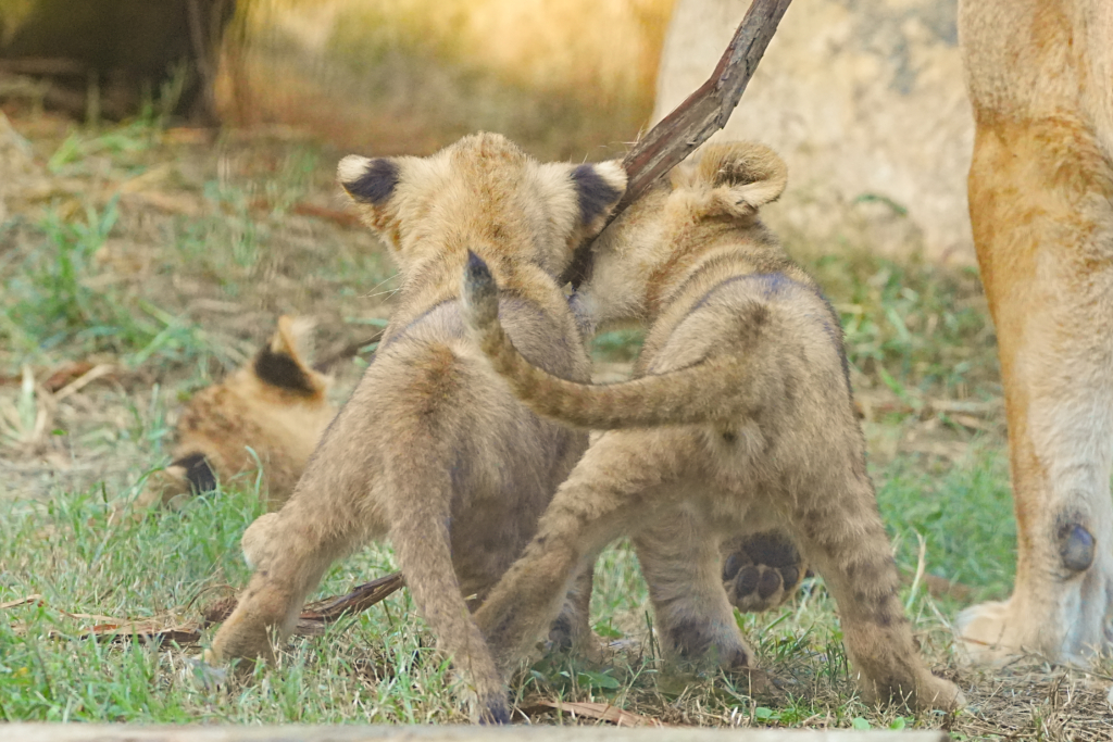 兄弟のお尻が気になる赤ちゃんライオン
