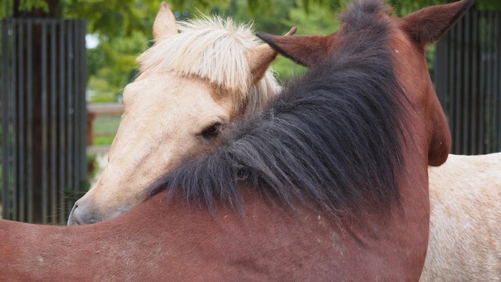木曽馬の一頭が横に倒れたまま動かなかったのでビックリしましたが、調べてみたらリラックスしているとのことで安心しました。