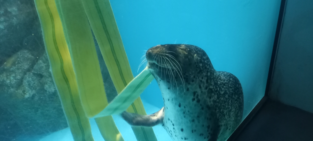 飼育員さんからイカをもらったもなか。しばらくこのイカで遊んでいました!