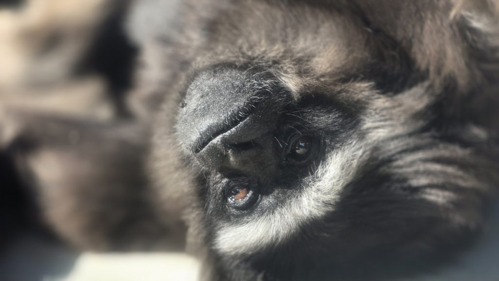 体操座りをしてこちらを見つめていてすごくかわいかったです。