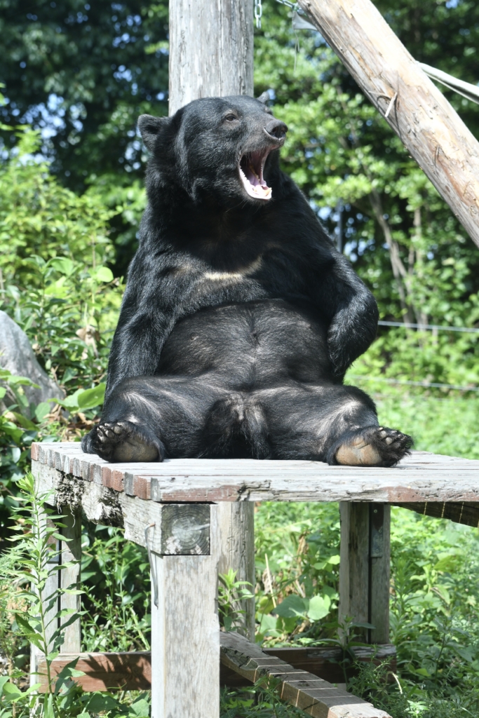 飼育員さんからもらったリンゴ氷を食べていました。