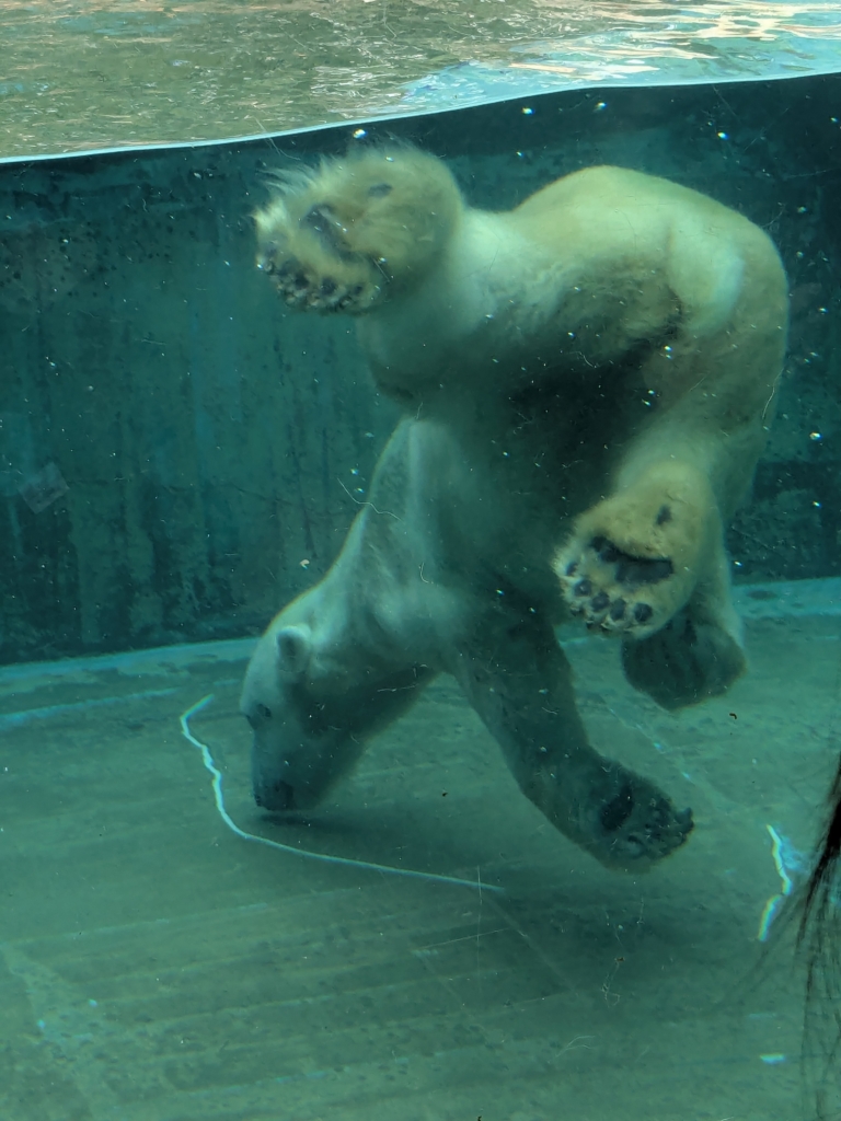 ごはんタイムにひと休みするホッキョクグマのクッキーさん