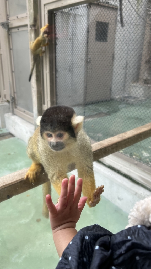 リスザルのおうちの前に行ったら、リスザルがごはんをもって僕やおとうとのまえにきてかわいかったです。