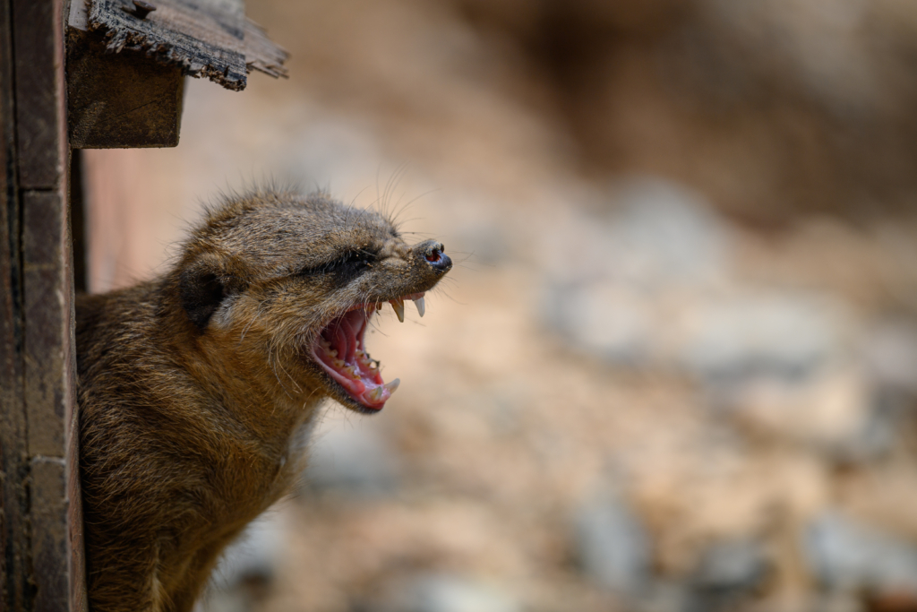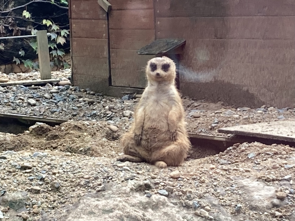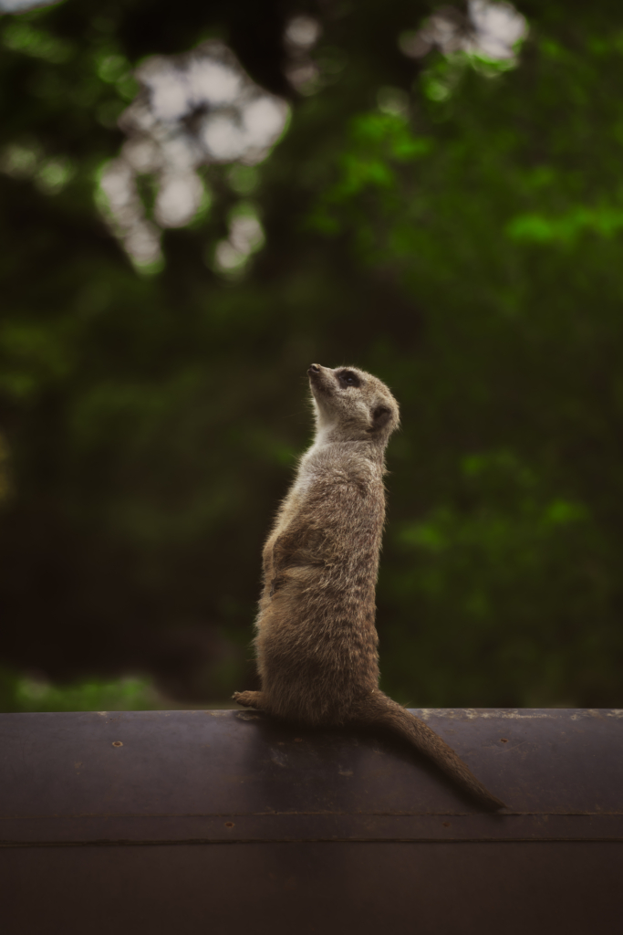 手前のミーアキャットと奥のミーアキャットのゆったりした雰囲気で、「今日のごはん何かな〜?」「何だろね〜?」とのほほんとした会話がされてそうでお気に入りの1枚です