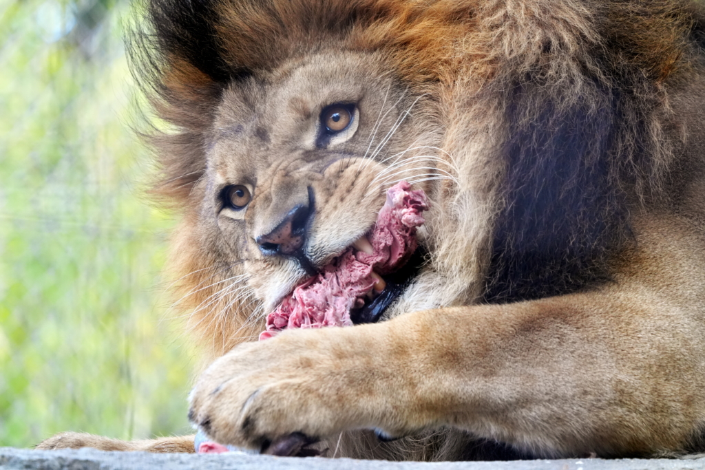 お食事中のライオンさん。ガツガツ食べてるぞっ!うまそー!