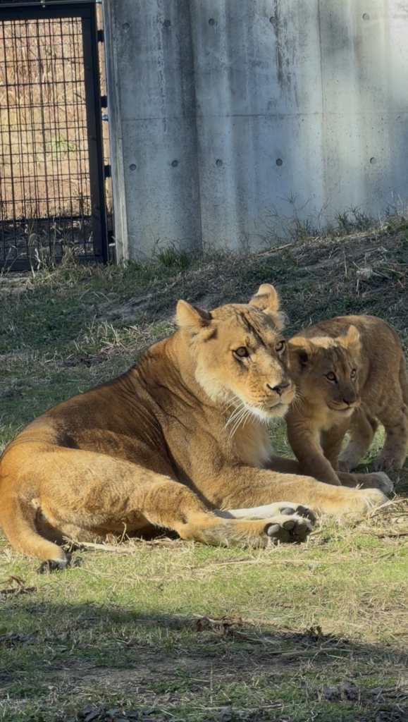 シルクに甘えていた時、一瞬の変化に親子同時に反応した瞬間です。さすがライオンと思ってしまいました。