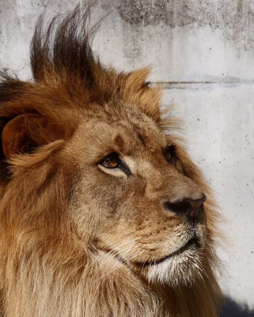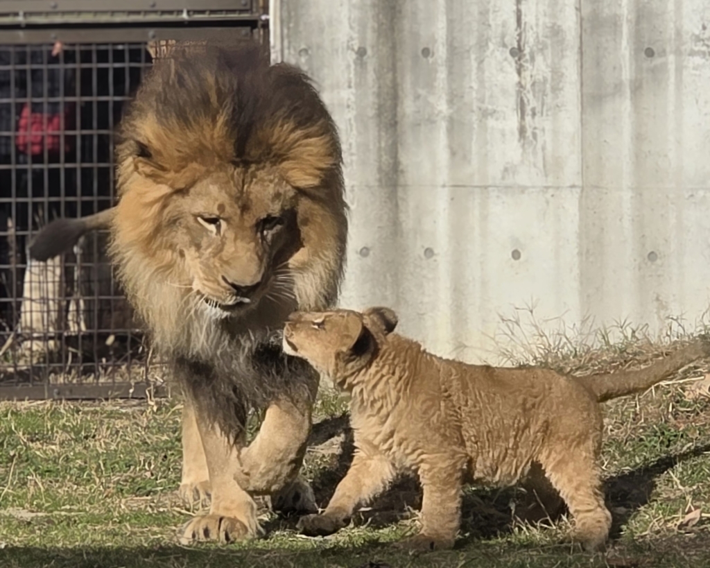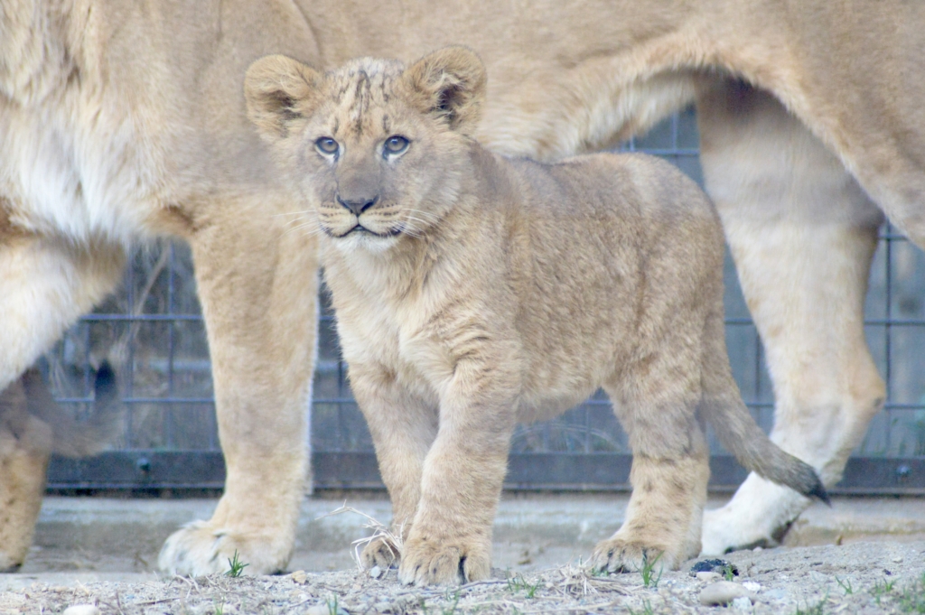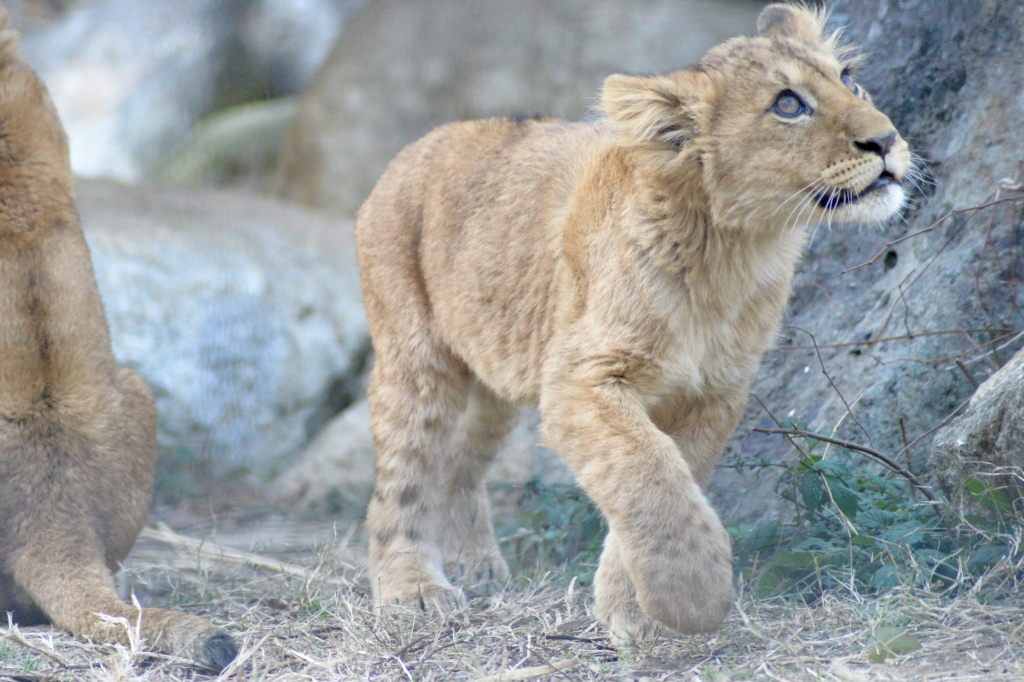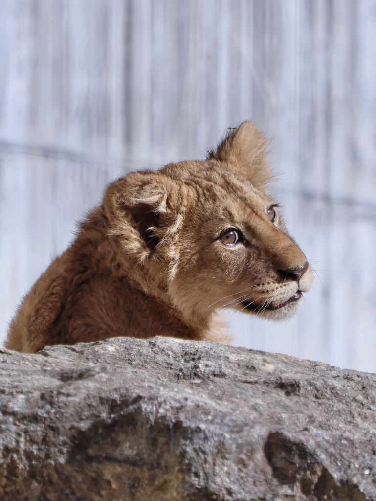 冬の澄んだ空気の中に映える仔ライオンの真っ直ぐな瞳。見つめる先にはどんな世界が映っているのか気になります