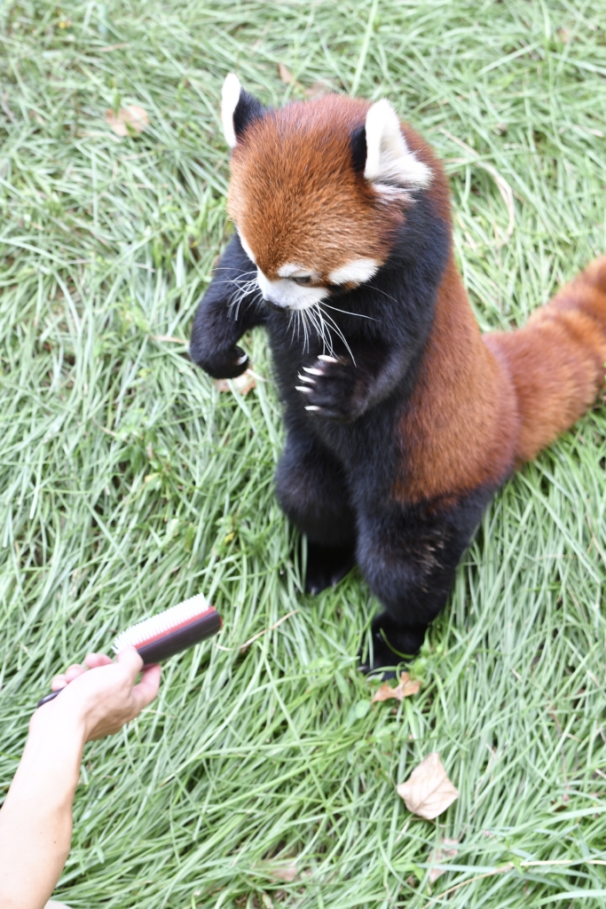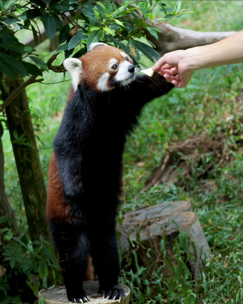 木陰からひょっこり顔を出したのは、レッサーパンダさん💕