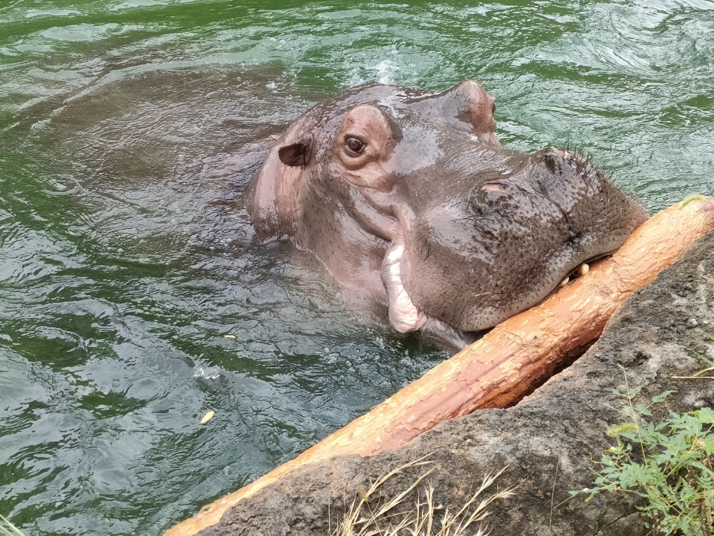丸太をがぶり!