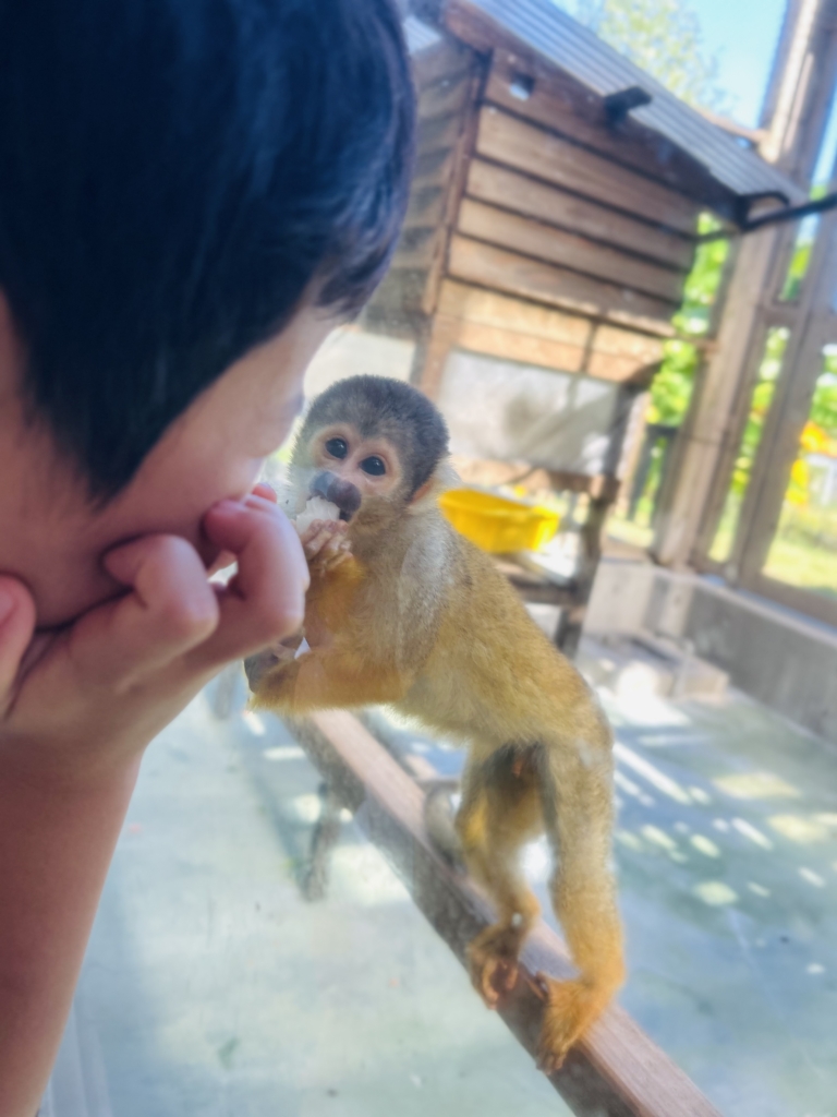 リスザルのおうちの前に行ったら、リスザルがごはんをもって僕やおとうとのまえにきてかわいかったです。