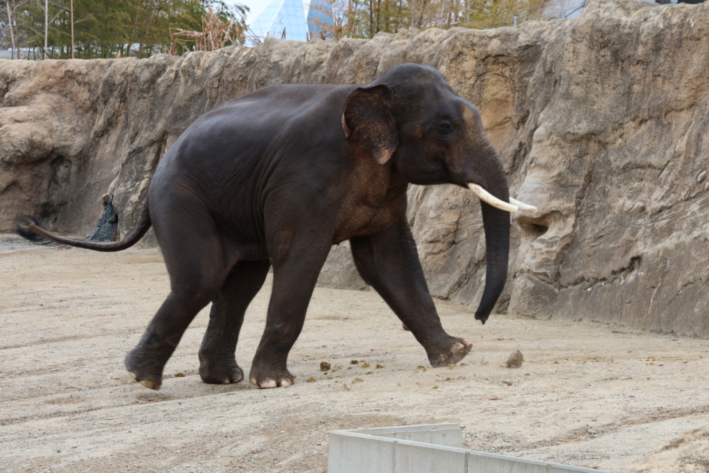 2月なのに気温が高かったこの日。ゾウさんの水浴びして気持ち良さそうな表情に癒されました。