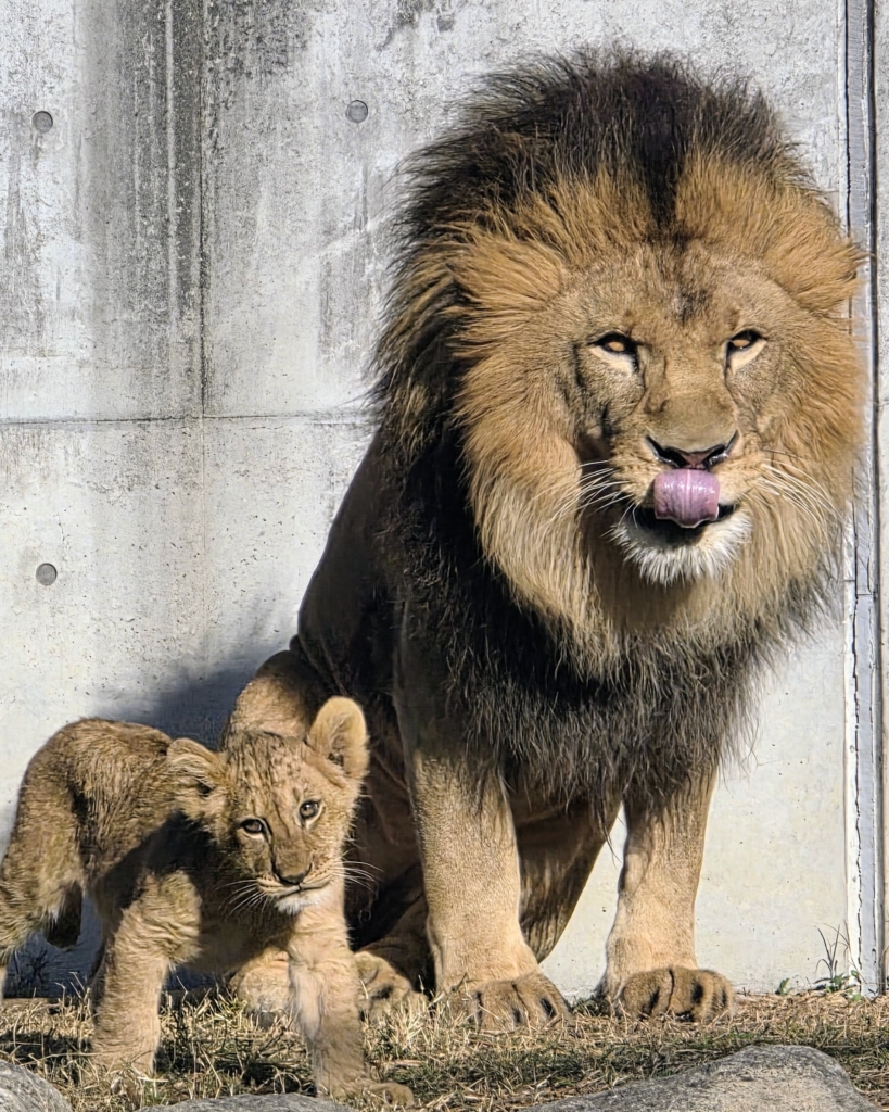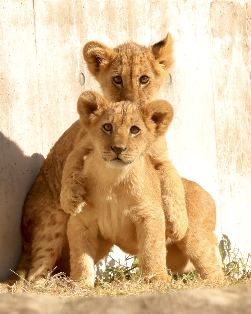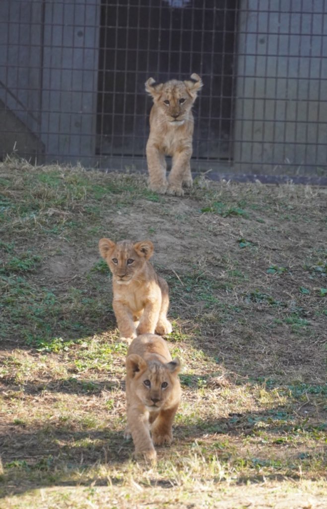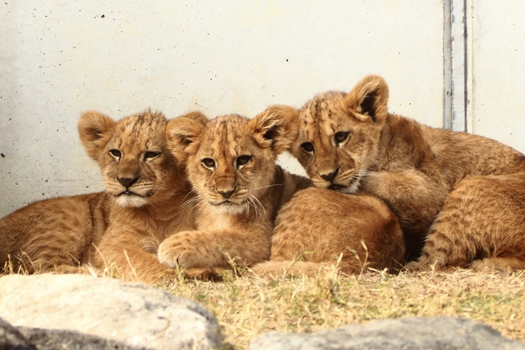お母さんとちょっと離れて3獅子で探検。それぞれの性格が出ているような表情がかわいい。