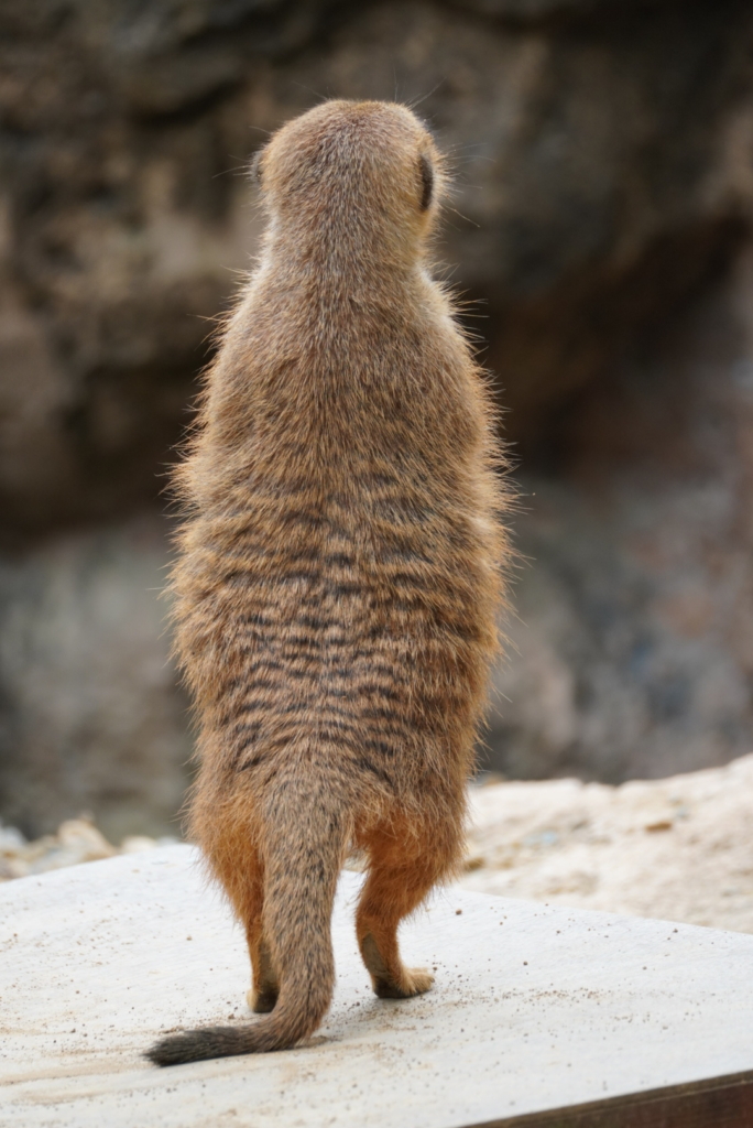 こんなに足ピンピンに背伸びしているミーアキャットに初めて会いました。