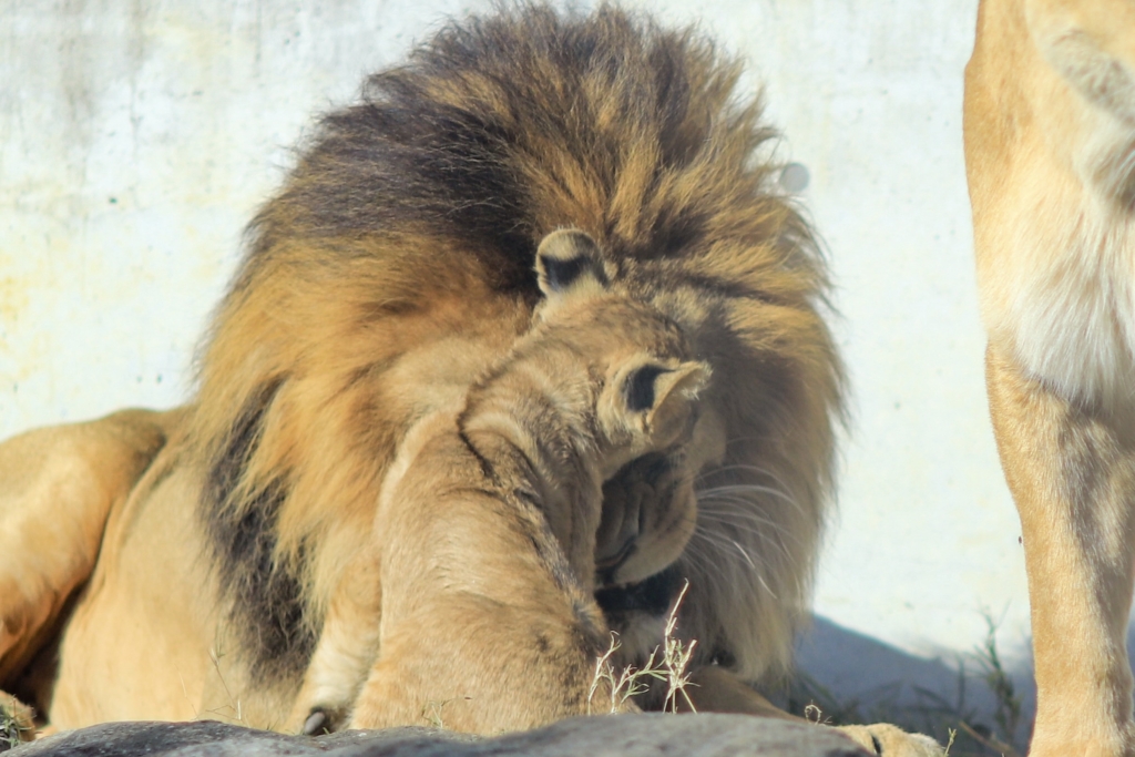 仔ライオンの優しいハグ