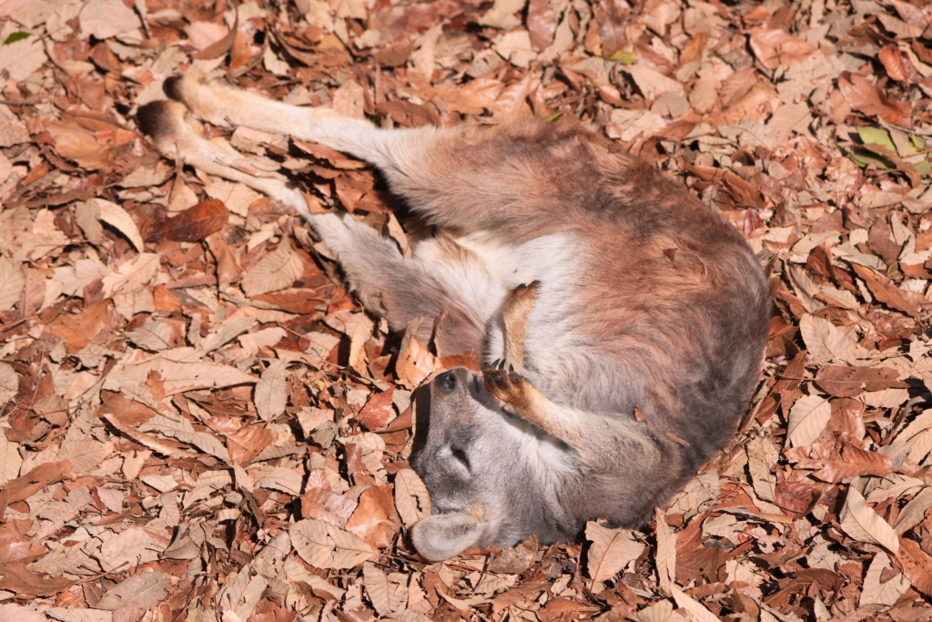 冬の日、おひさまであったまった落ち葉のおふとんで、やわらかい陽ざしを浴びながら寝ていた子。 とっても気持ちよさそうでした。