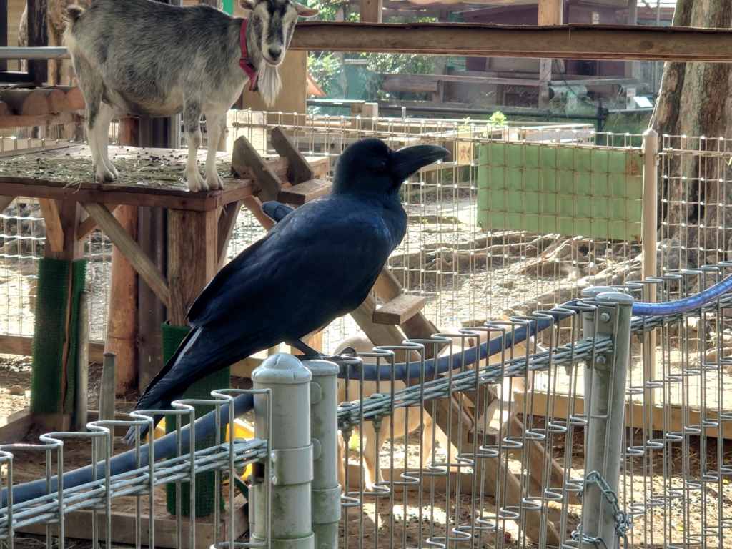 立派な体格のカラス?奇跡的につみれちゃんとのツーショットが撮れた1枚